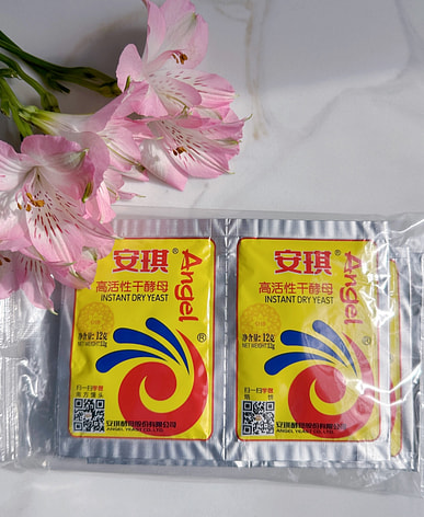 Angel yeast, 5 grams per small packet, is convenient to use and produces good leavening results.
