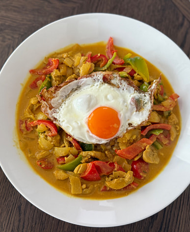 Loves green curry with veggies and any protein you desire. Then have it over steamed rice.