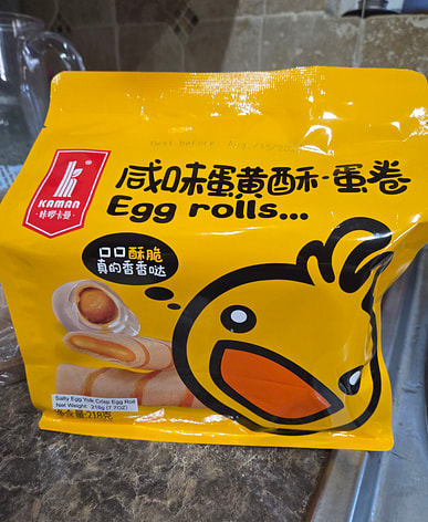 Please note that this is a savory egg yolk pastry, not a salted egg yolk pastry! The egg rolls taste pretty good, with a strong egg flavor, but not salted egg yolk flavor.