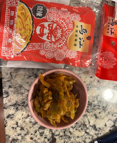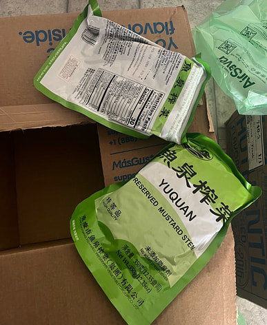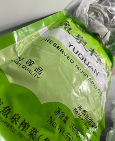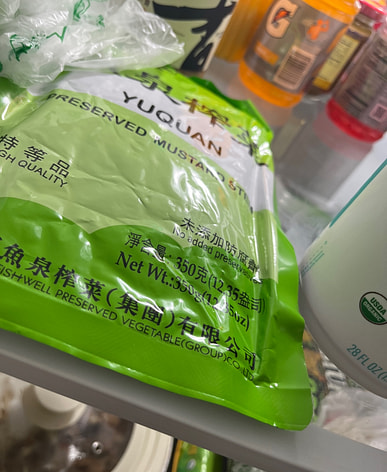 I always keep pickled mustard greens on hand at home; they're one of my favorites.