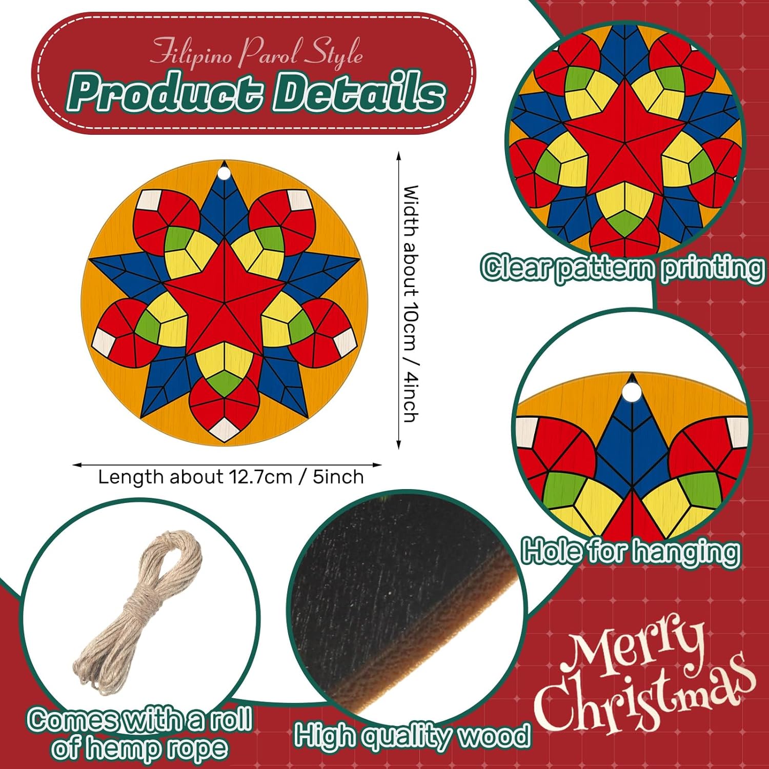 - 精美切割:清晰的印刷和精美的激光切割,讓這款菲律賓燈籠裝飾品爲您的節日裝飾增添了質樸的魅力;隨附的麻繩方便懸掛,營造溫馨舒適的節日氛圍。