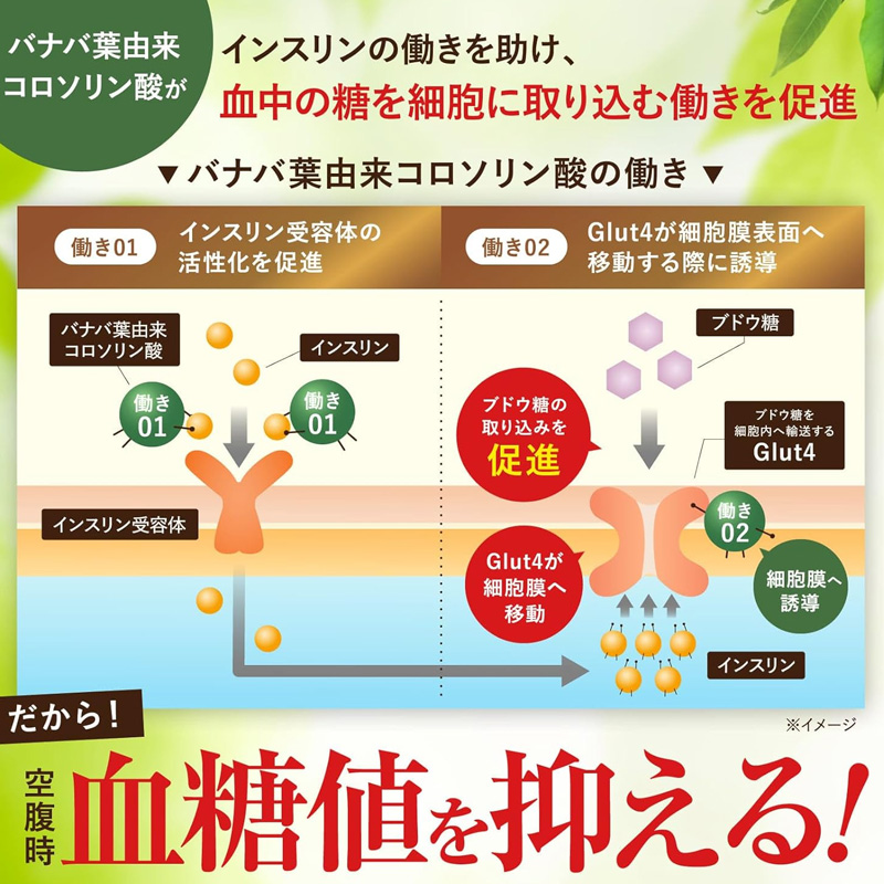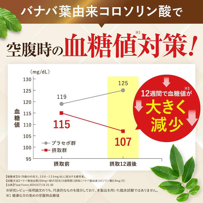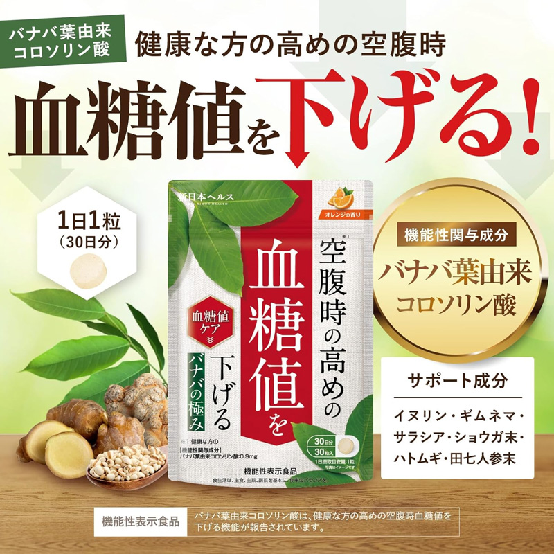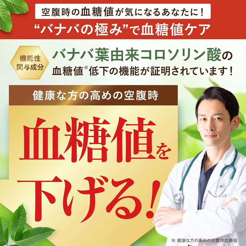 Banaba no Kiwami is a functional dietary supplement designed to support healthy fasting blood sugar levels. Supervised by a physician, the formula contains 0.9 mg of corosolic acid derived from banaba leaves, known for supporting blood glucose balance.