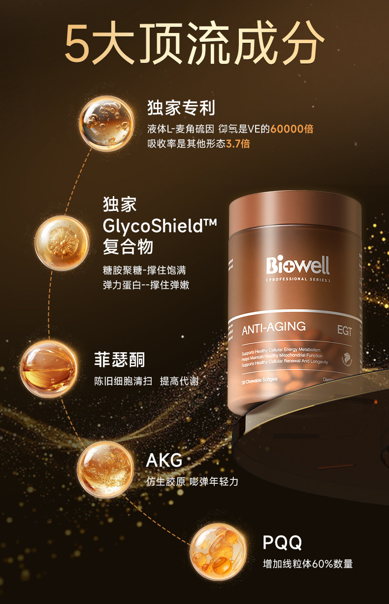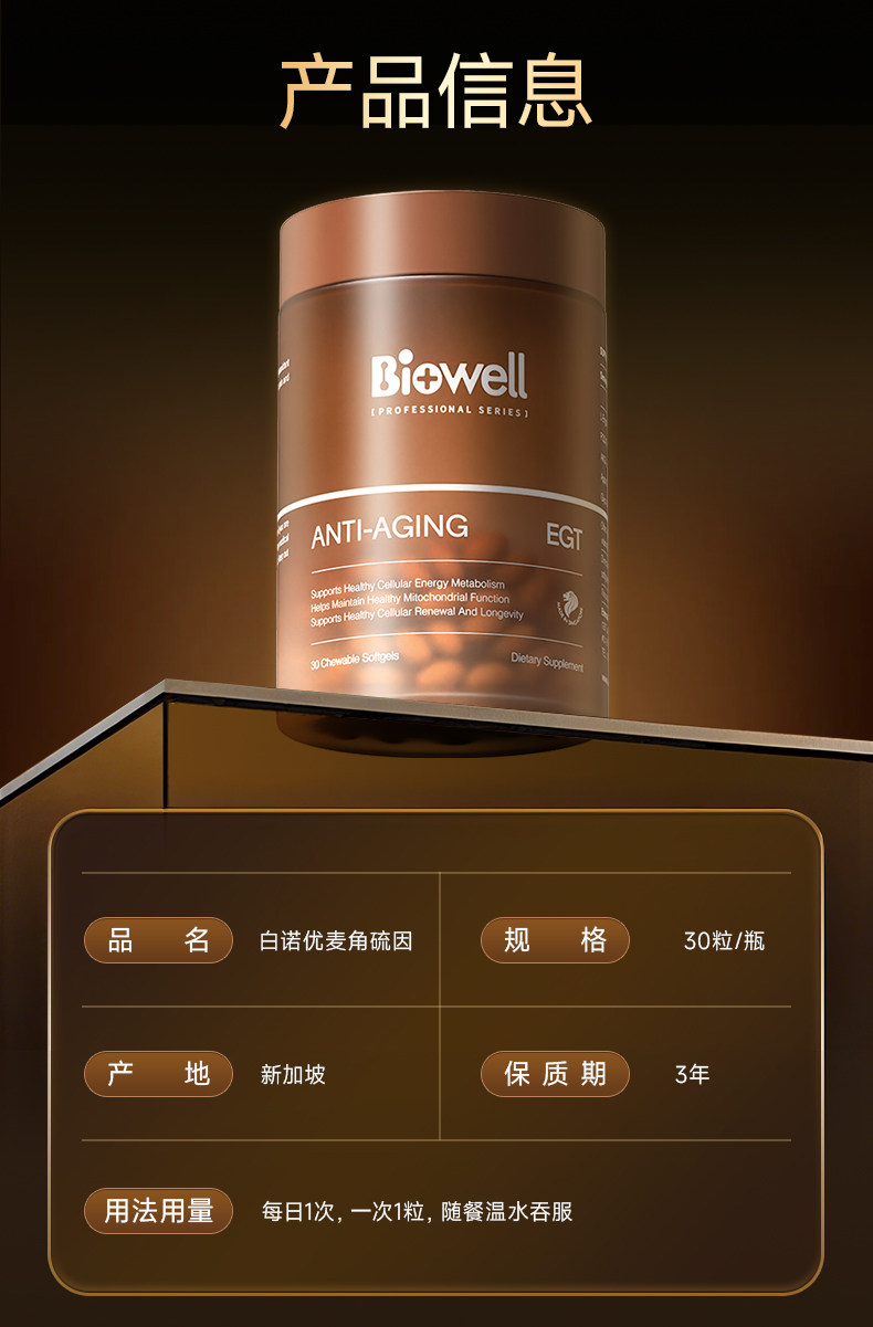 Biowell Anti aging EGT 30 Capsules 1 bottle