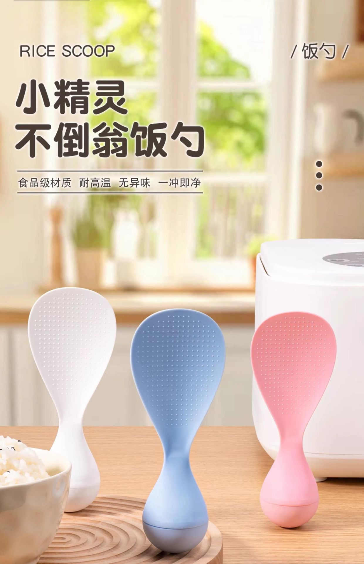 Bobblehead Non-Stick White Standable Rice Spoon 1 count