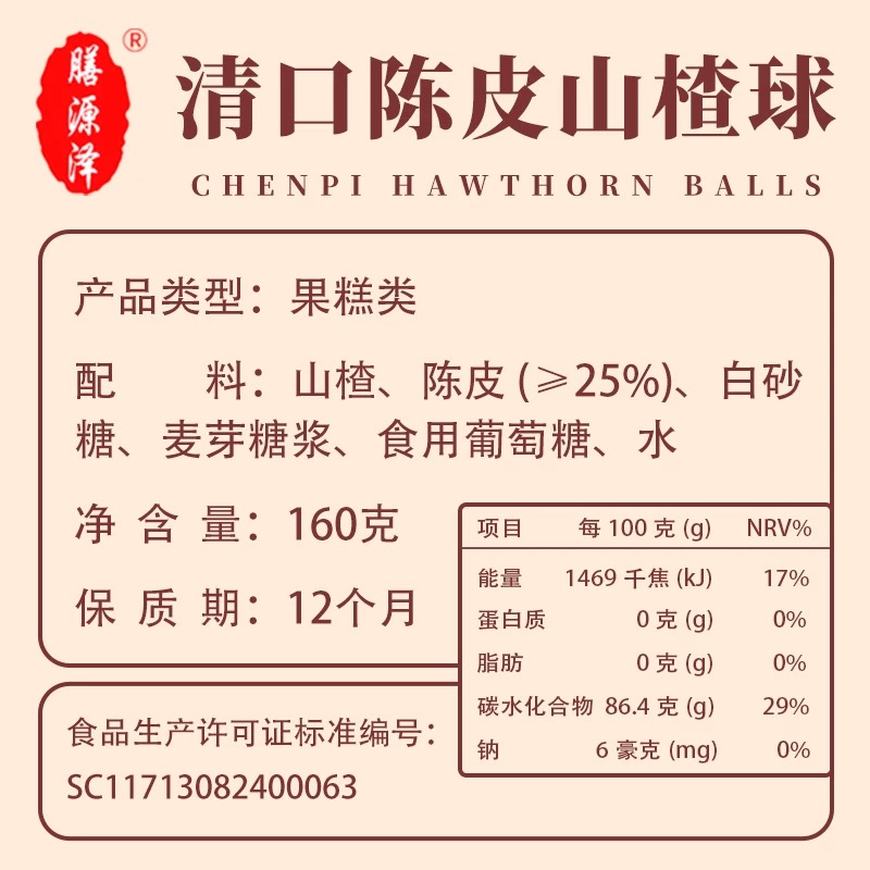 膳源泽 清口陈皮山楂球 160 克