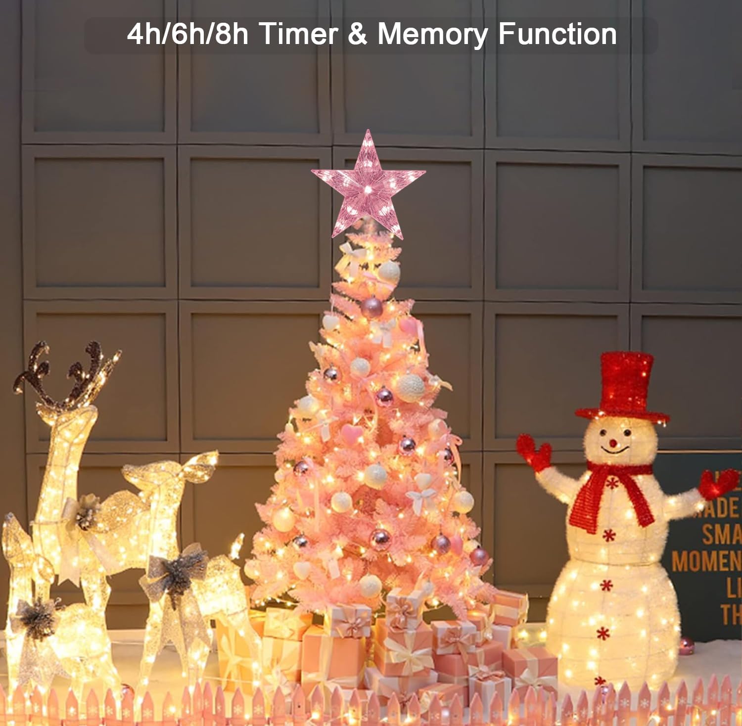 Distinctive Design: Add a touch of elegance with our intricately crafted 3D LED star. Perfectly complementing your tree, it doubles as a captivating decoration for mantels, windowsills, or any space needing festive cheer