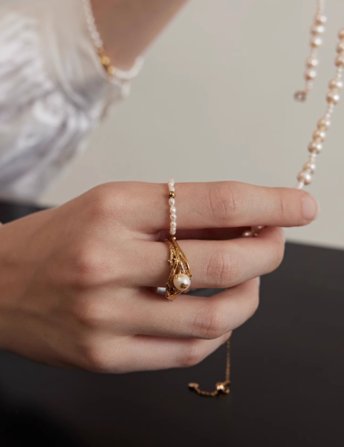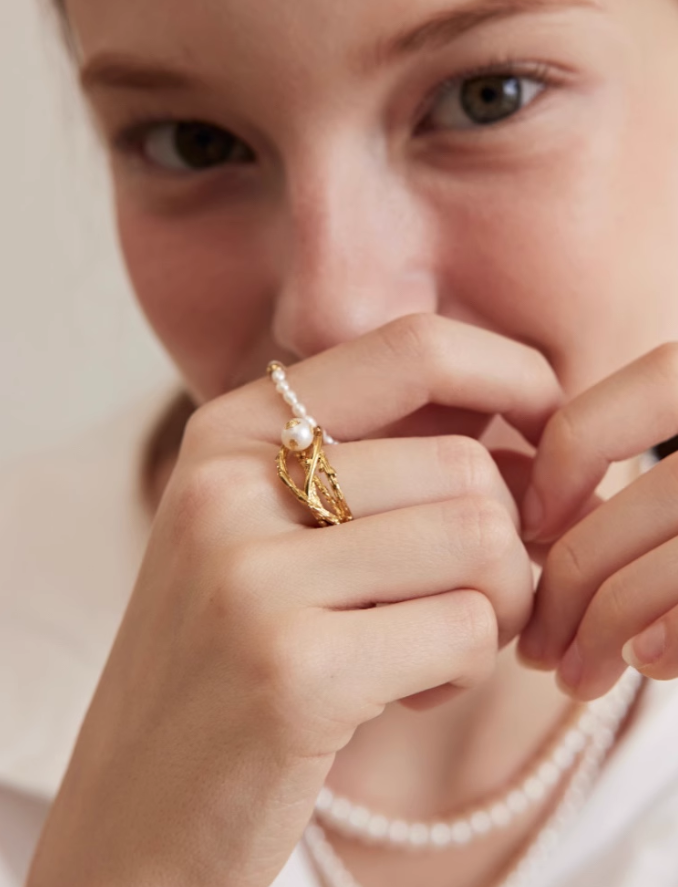 Embellished Pearl Ring 1 개입