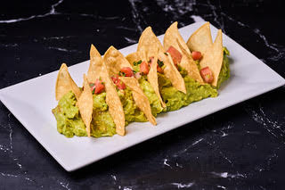 Ingredients: avocado, salt, onion, cilantro, tomato and chips corn tortilla.