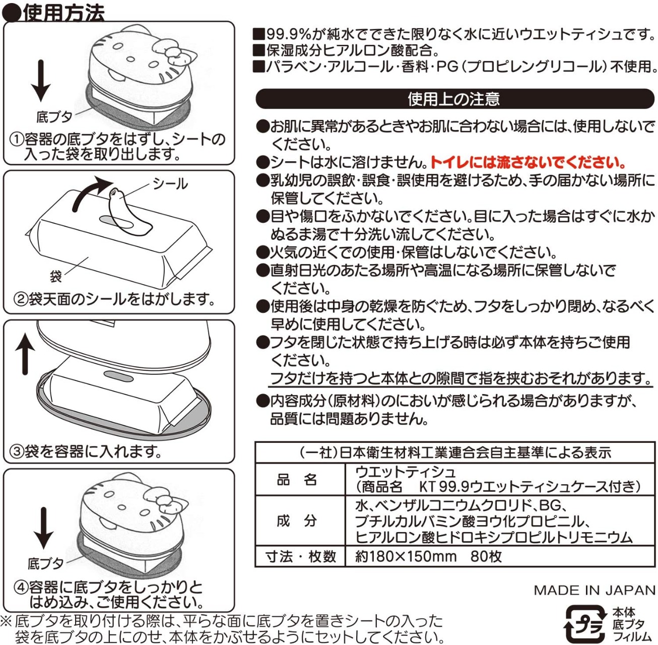 Refill Packs "Hello Kitty Water 99.9% Wet Tissues, 80 sheets x 3pcs is available.(Sold separately)