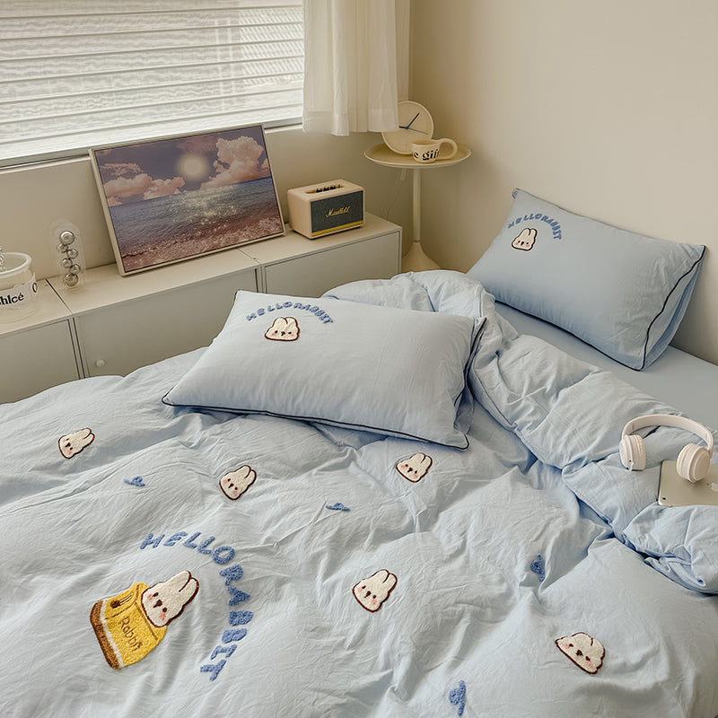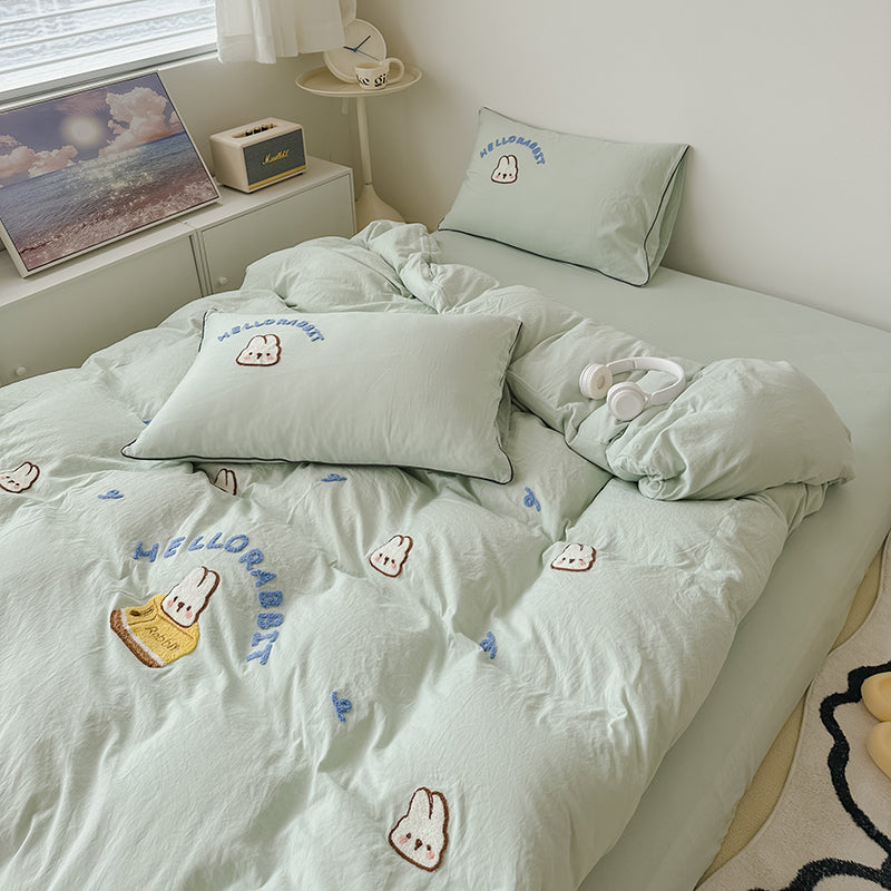 萌趣治癒,精緻睡眠。甄選親膚水洗棉,透氣乾爽。麪包兔萌趣刺繡圖案簡約可愛,針腳細密乾淨,生動立體,爲臥室注入治癒活力。精工細作,經久耐用,輕鬆打造溫馨舒適、充滿萌趣的睡眠空間。