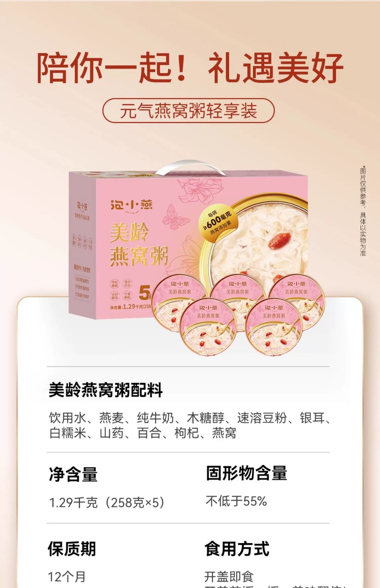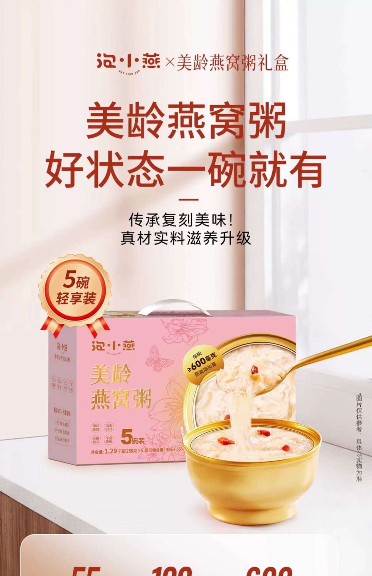 泡小燕 美齡燕窩粥禮盒 代餐燕窩258g*5碗 1290 克