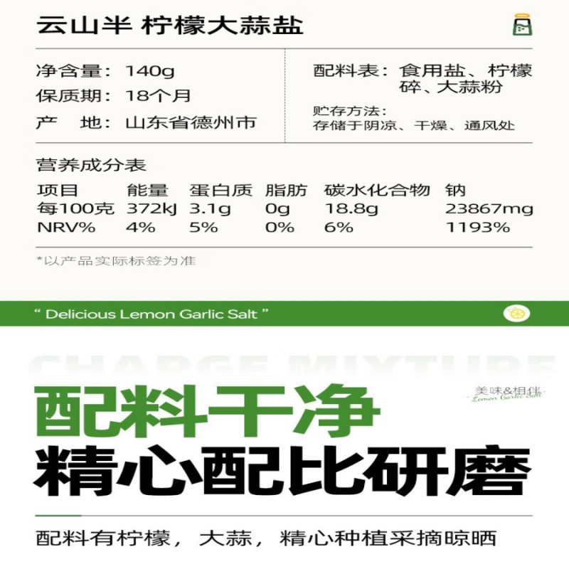 Lemon Garlic Salt 0 Additives For Grilling 140 g