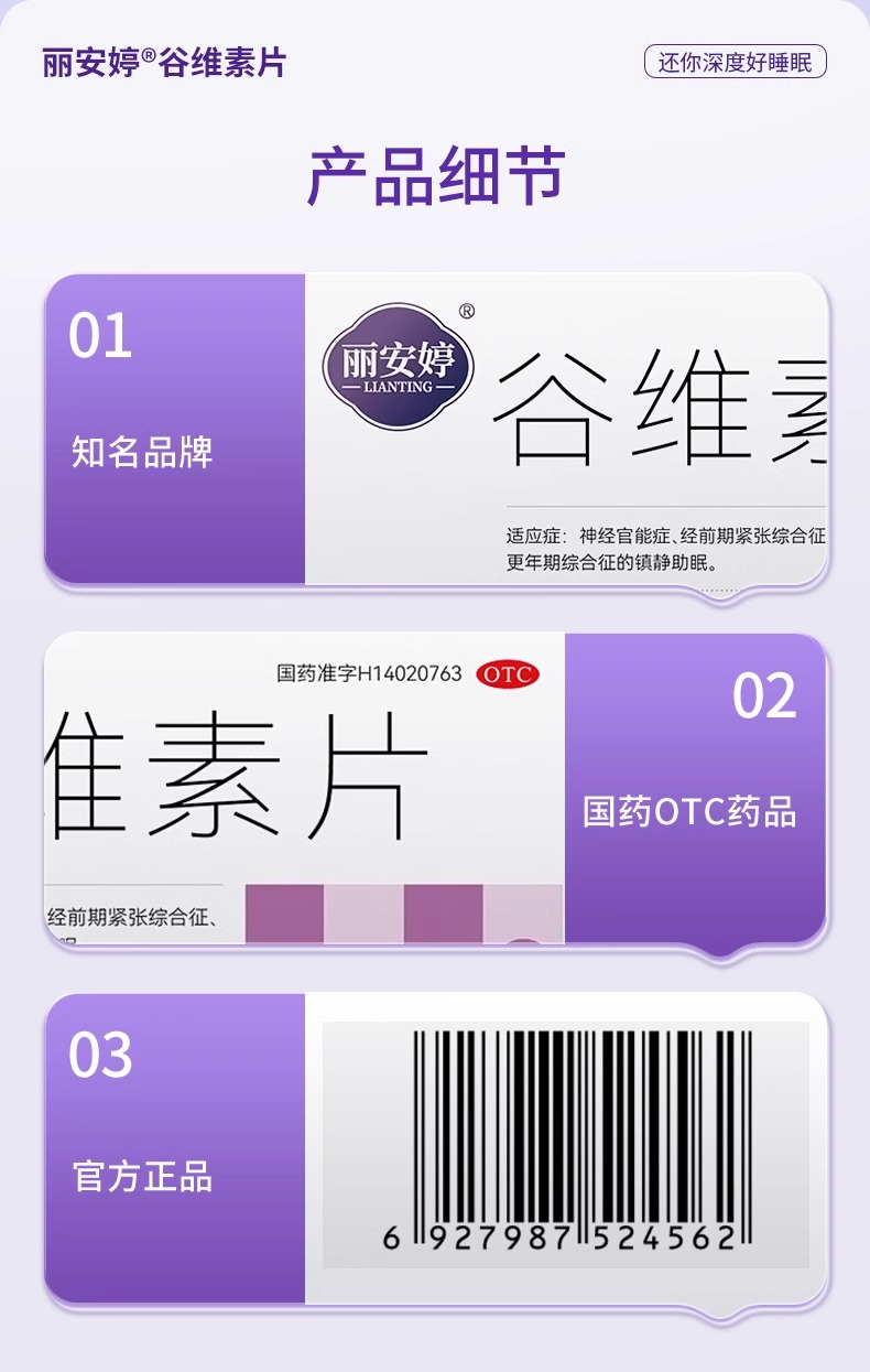 麗安婷 谷維素片100片/盒 安神助眠改善睡眠 1 盒