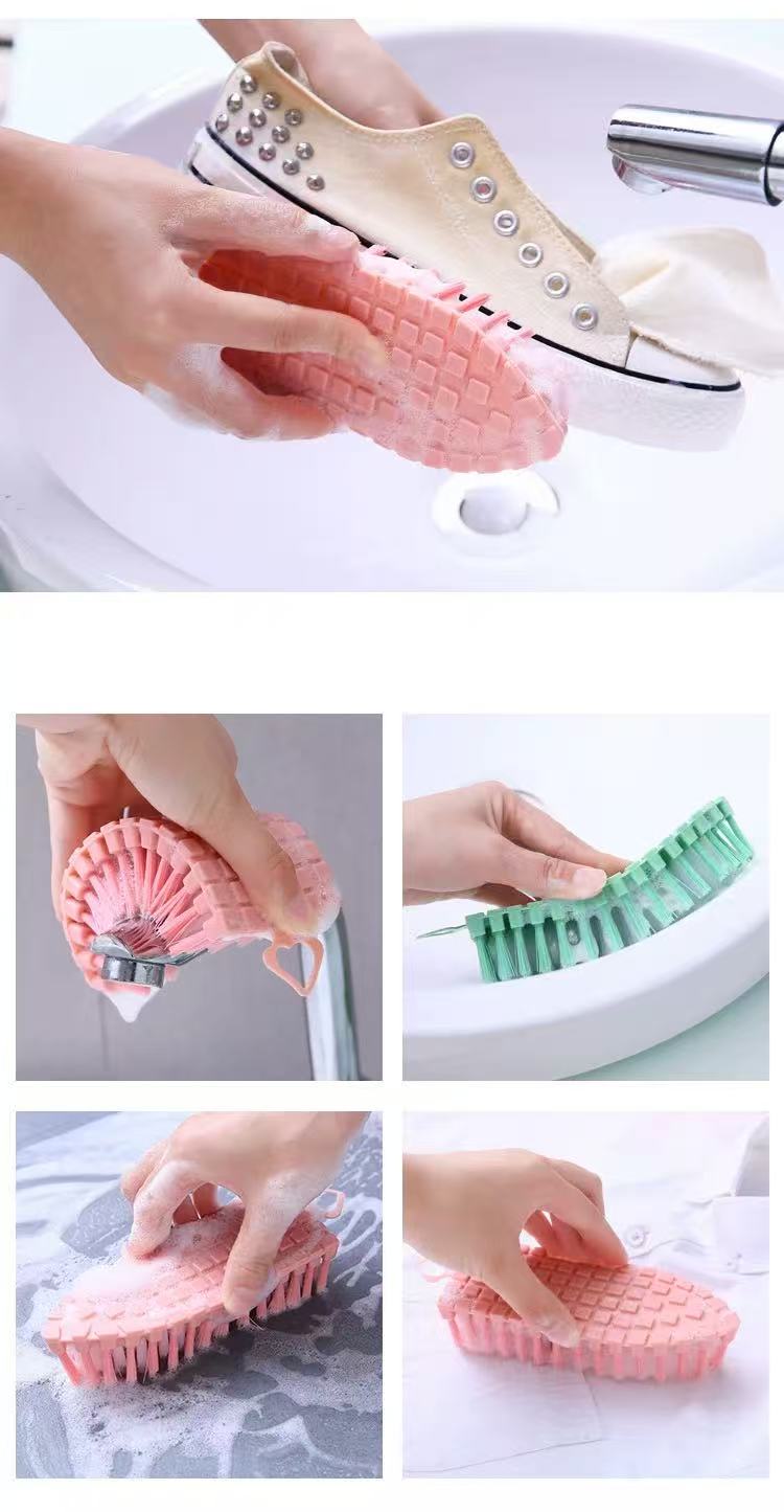 多功能彎曲清潔刷 掛式可彎曲鞋刷浴缸水龍頭清潔粉色 1 把