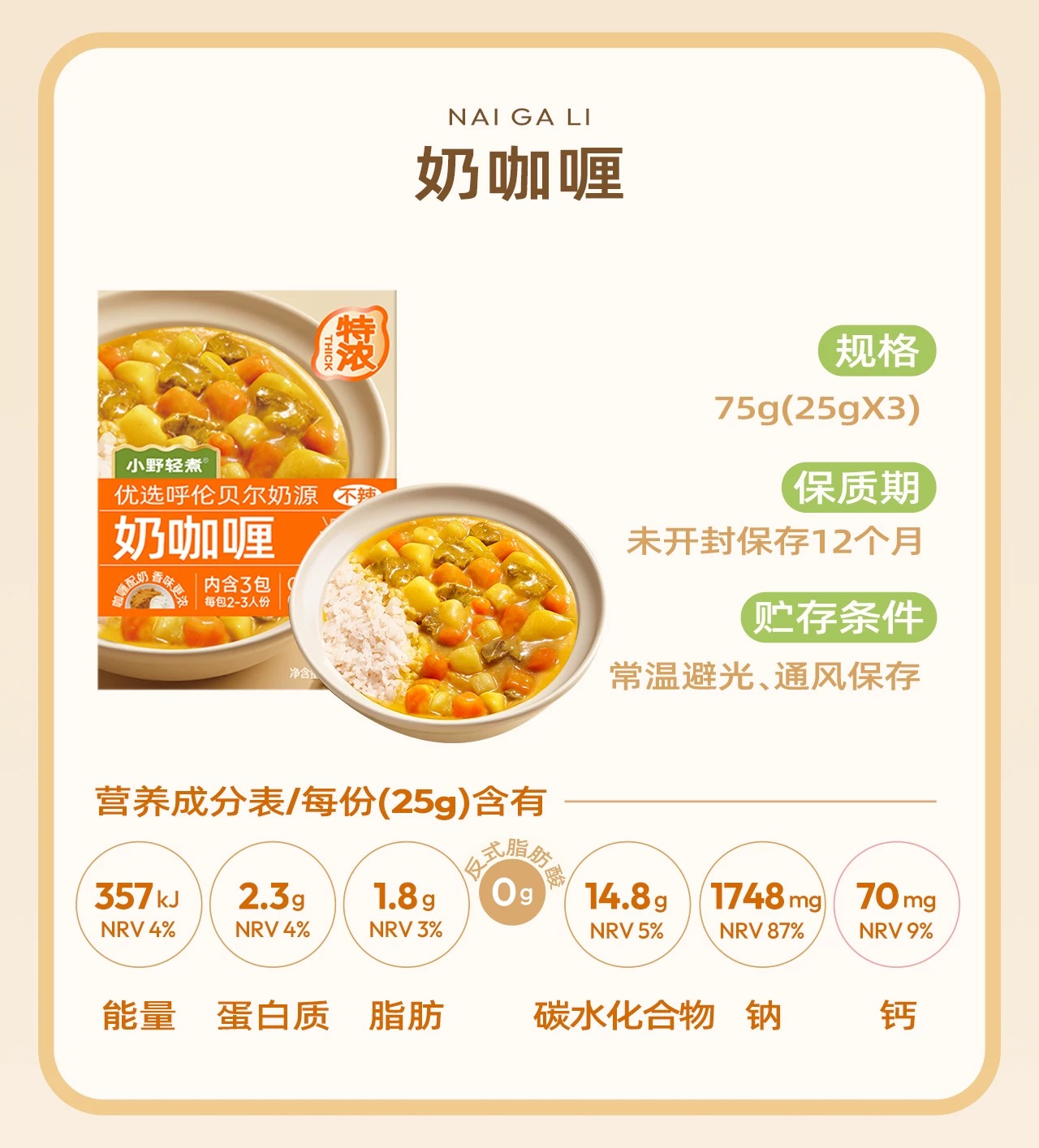 小野轻煮奶咖喱 料理包调味 75 克