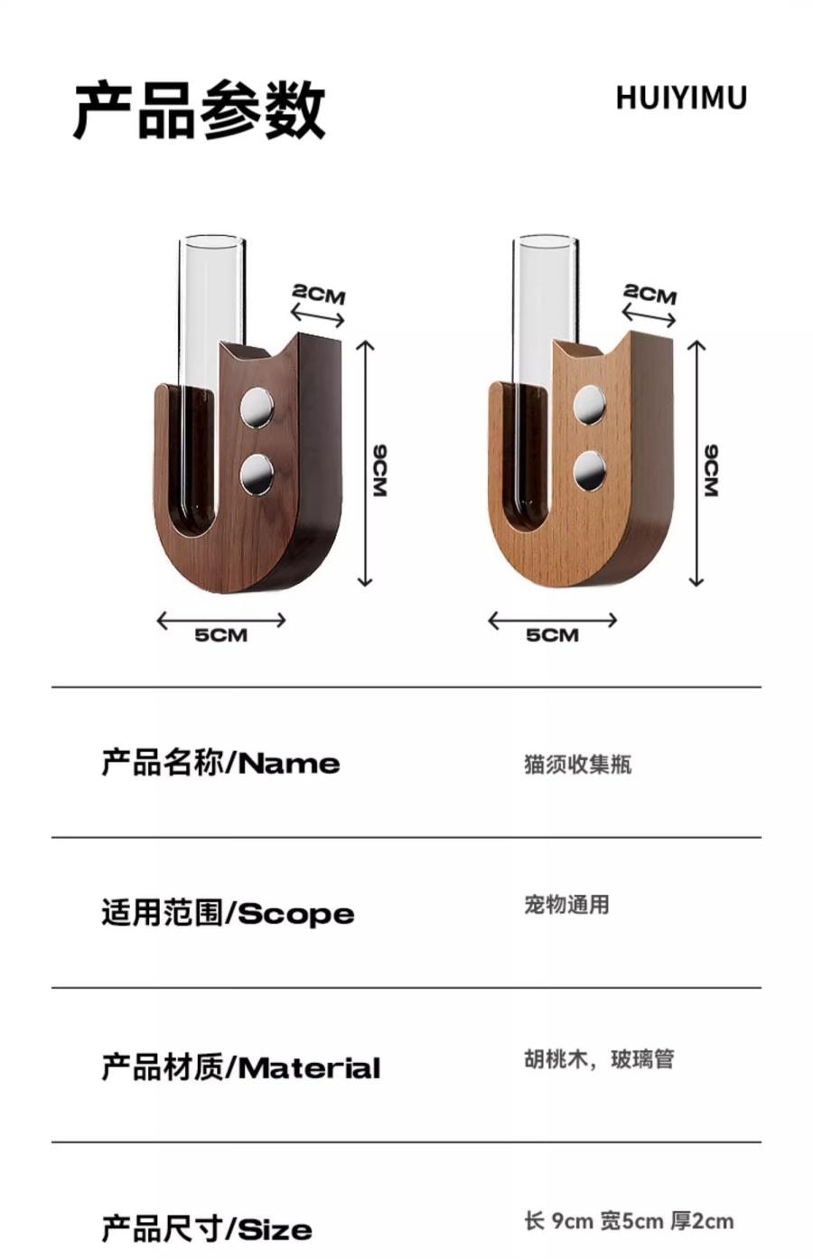 寵物毛髮紀念盒 鬍鬚收納盒 收集器- 櫸木+玻璃管 1 份