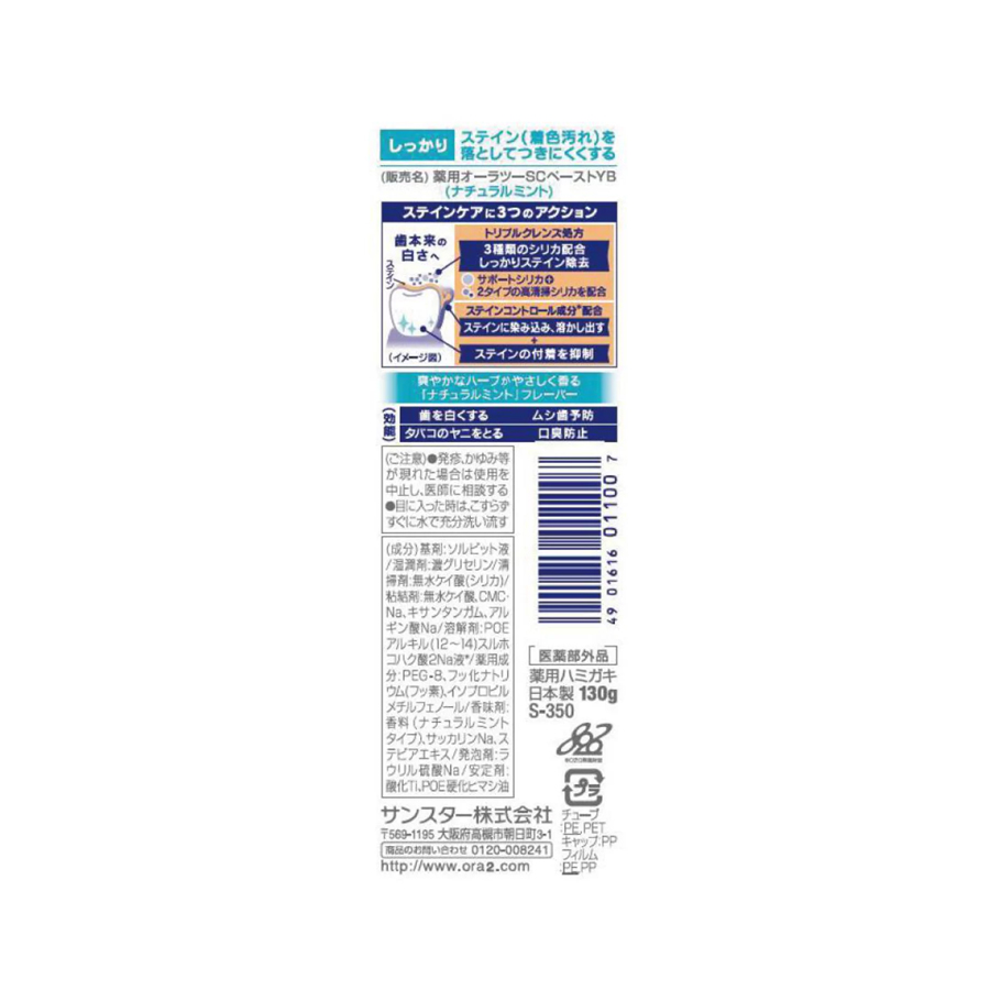 SUNSTAR Ora2 Toothpaste Stain Clear Natural Mint 130 g