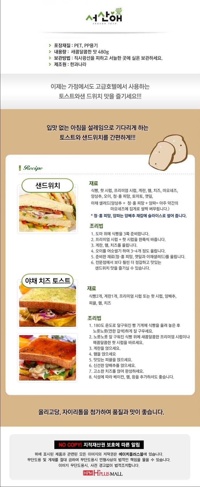 Seosan Ae Toast Sandwich Syrup Sweet & Tangy Kiwi Flavor (480 g)