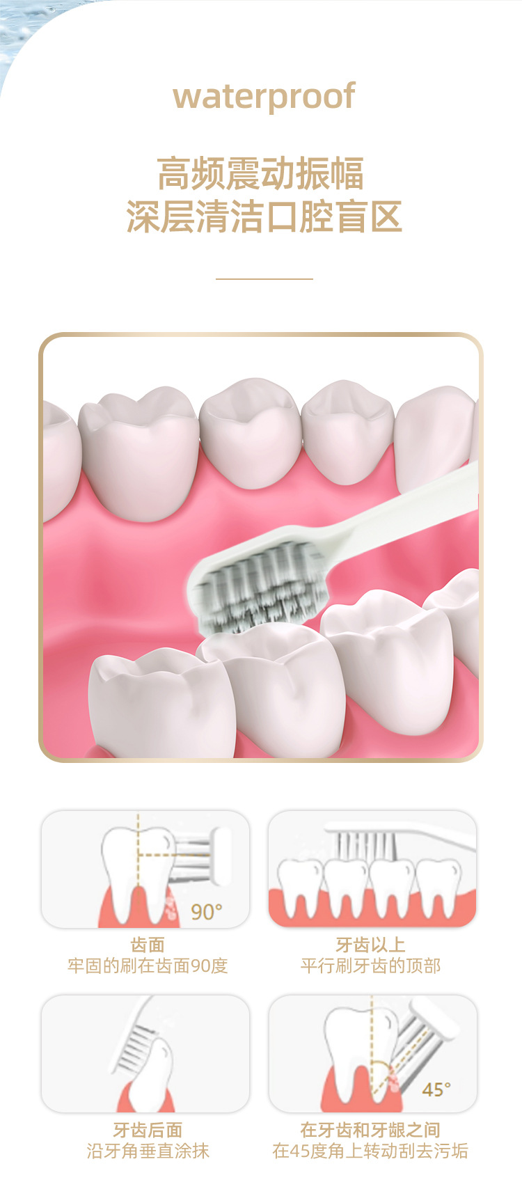 スマートソニック電動歯ブラシ、USB 充電式自動歯ブラシ、防水柔らか毛 家庭用 1 bunch