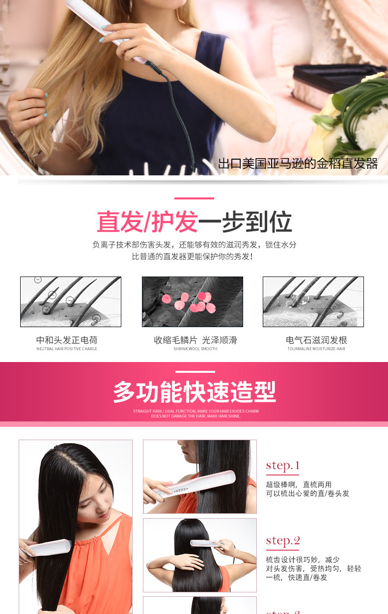 金稻 直发梳直发棒 不伤发 直卷两用 卷发棒美发梳 110V 6档调温10秒起热双层隔热防烫手 1 份