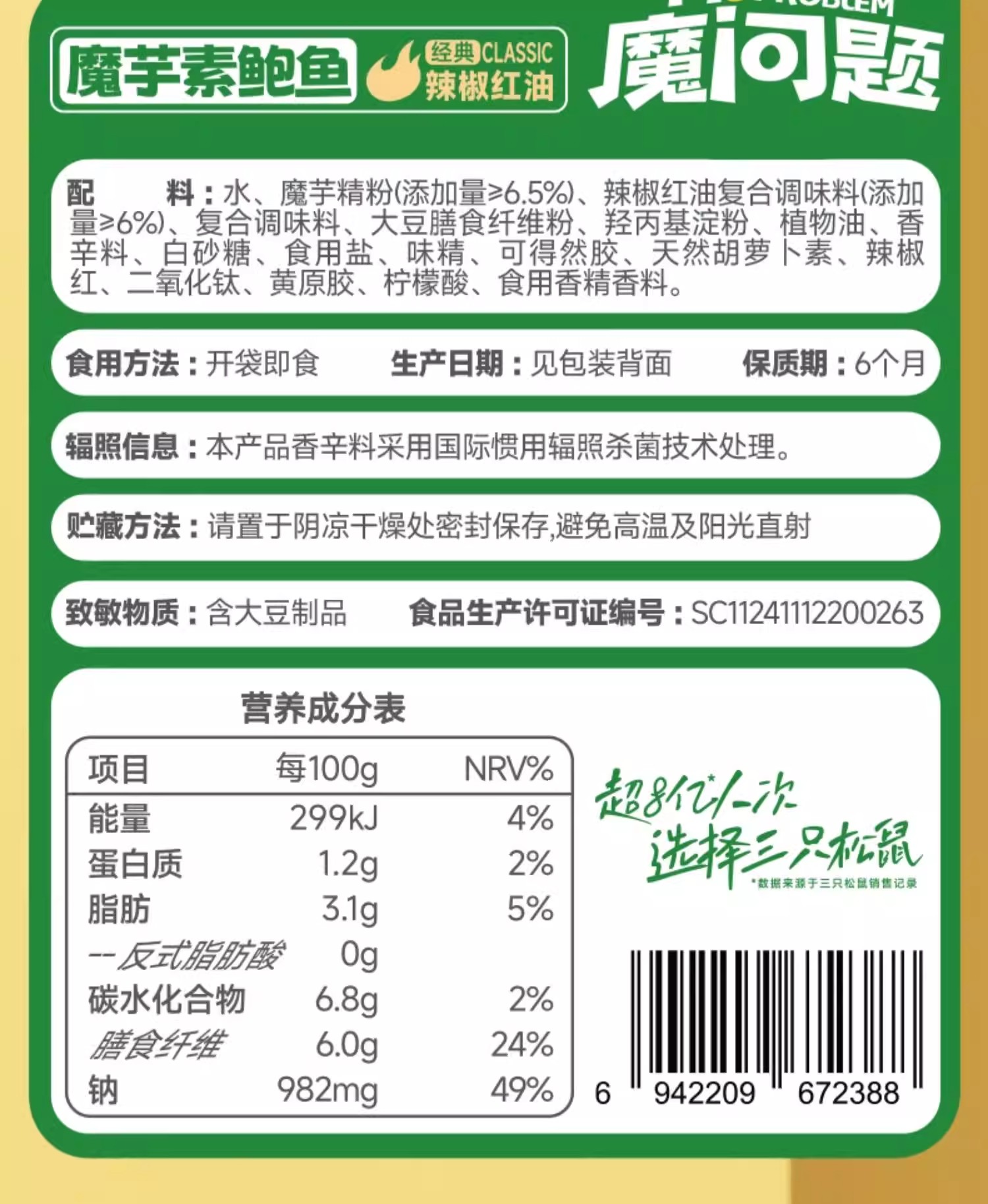 Three Squirrels Konjac Vegetarian Abalone 186 g