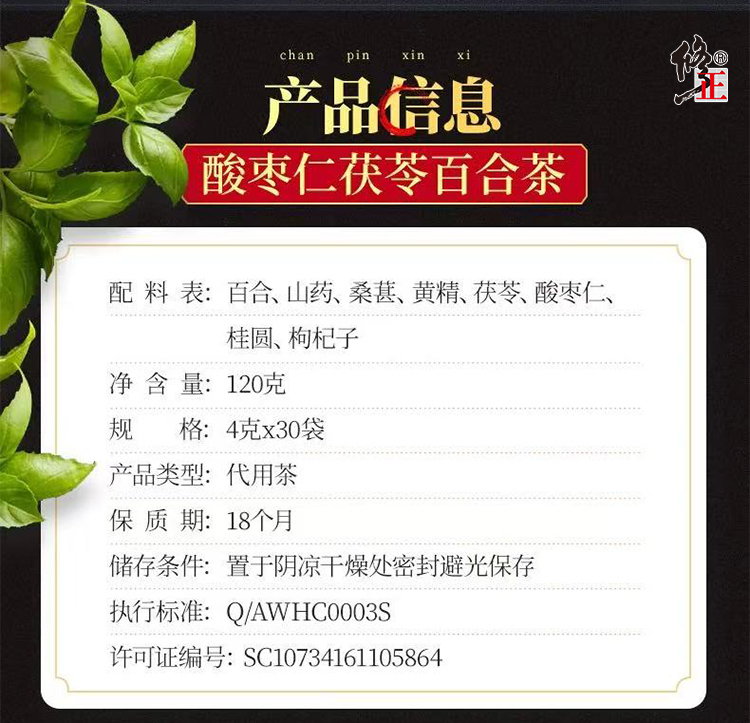 修正 酸棗仁茯苓百合茶 120 克