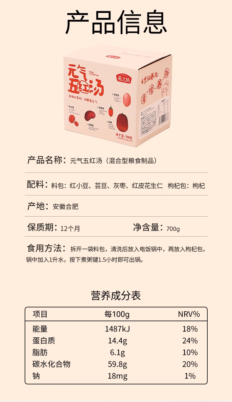 Yanzhifang Five-Red Rice Porridge with Mixed Grain 700 g