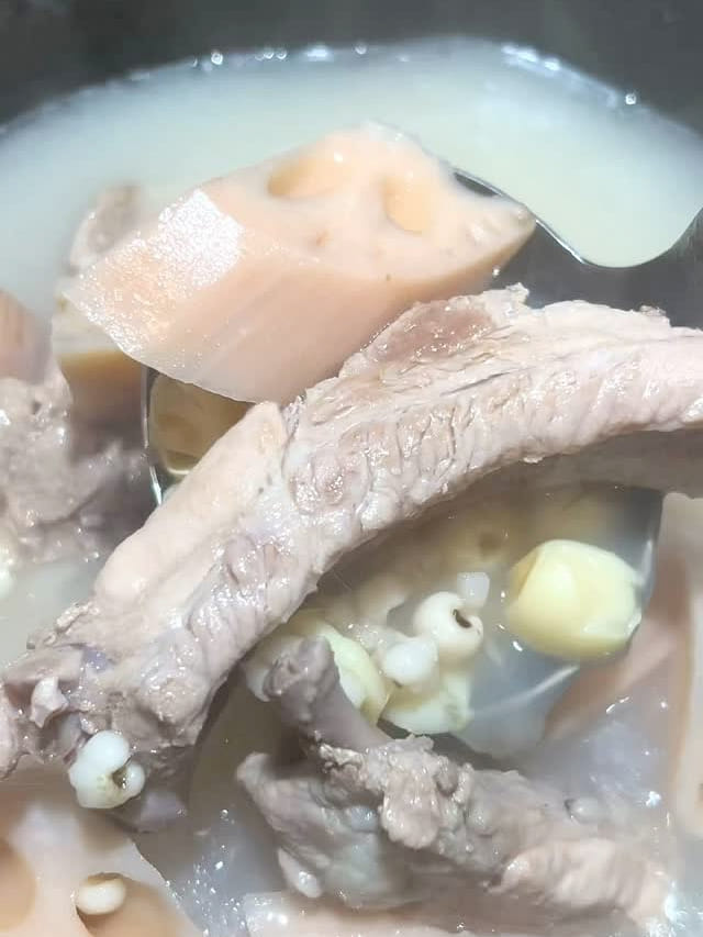 Lotus root, lotus seed, barley and pork ribs soup