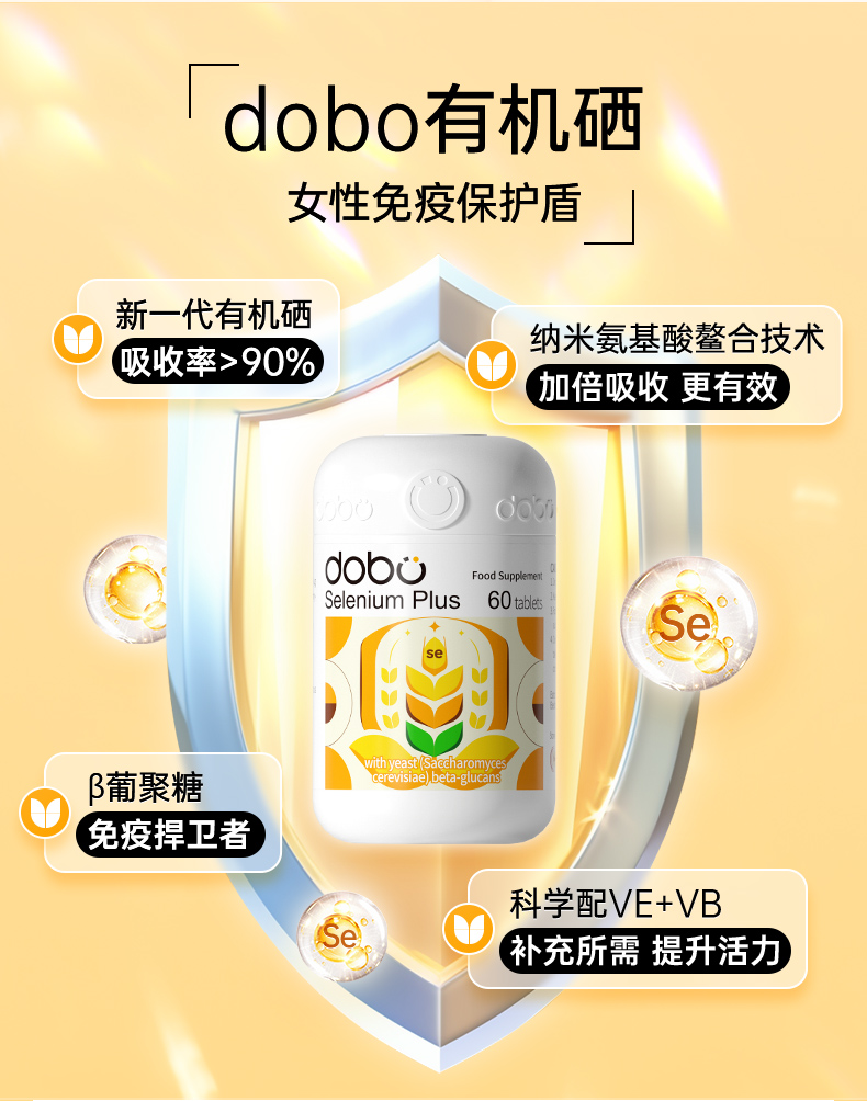 DOBO活性硒片60片麥芽硒酵母片提高女性免疫力 1 盒