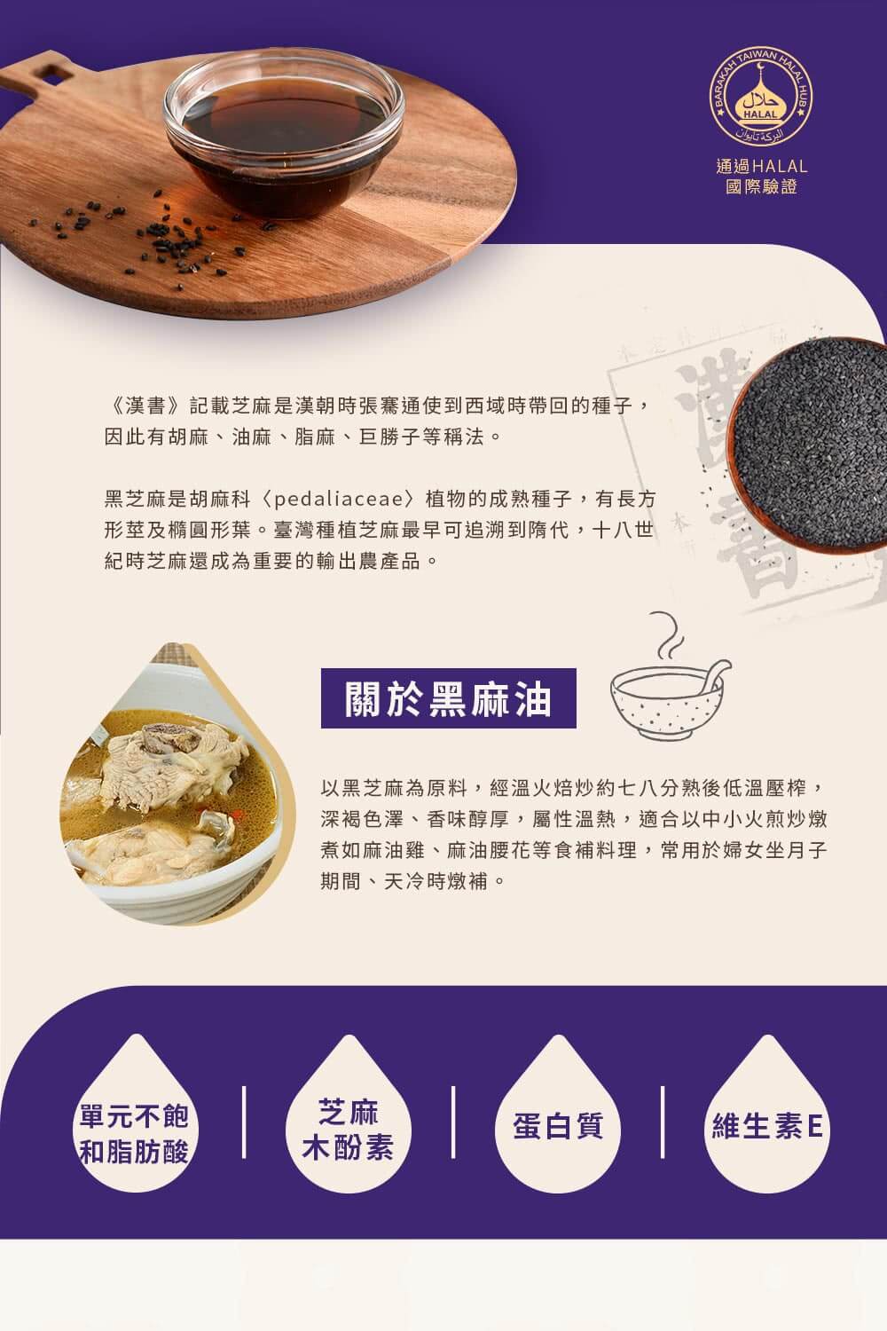 不論是夏日來道麻油涼拌,還是冬日的麻油清湯,溫順又帶點果香的頂級黑麻油,私廚必備的經典油品,加一匙正宗華人美味