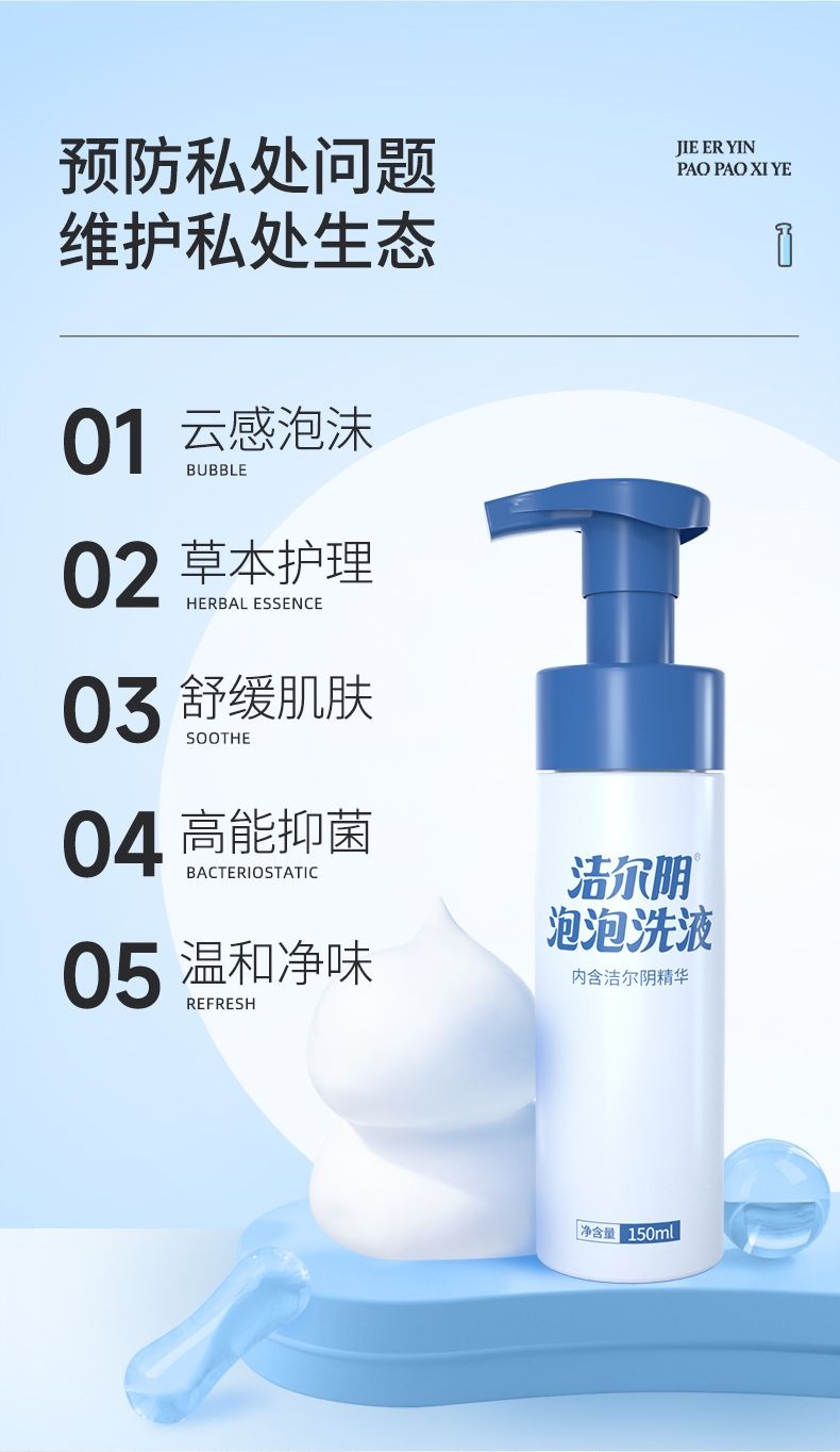 洁尔阴女性私处护理液外阴洗护女士私密处清洗液抑菌洁阴泡沫慕斯(150ML/盒,1盒装) 150 毫升
