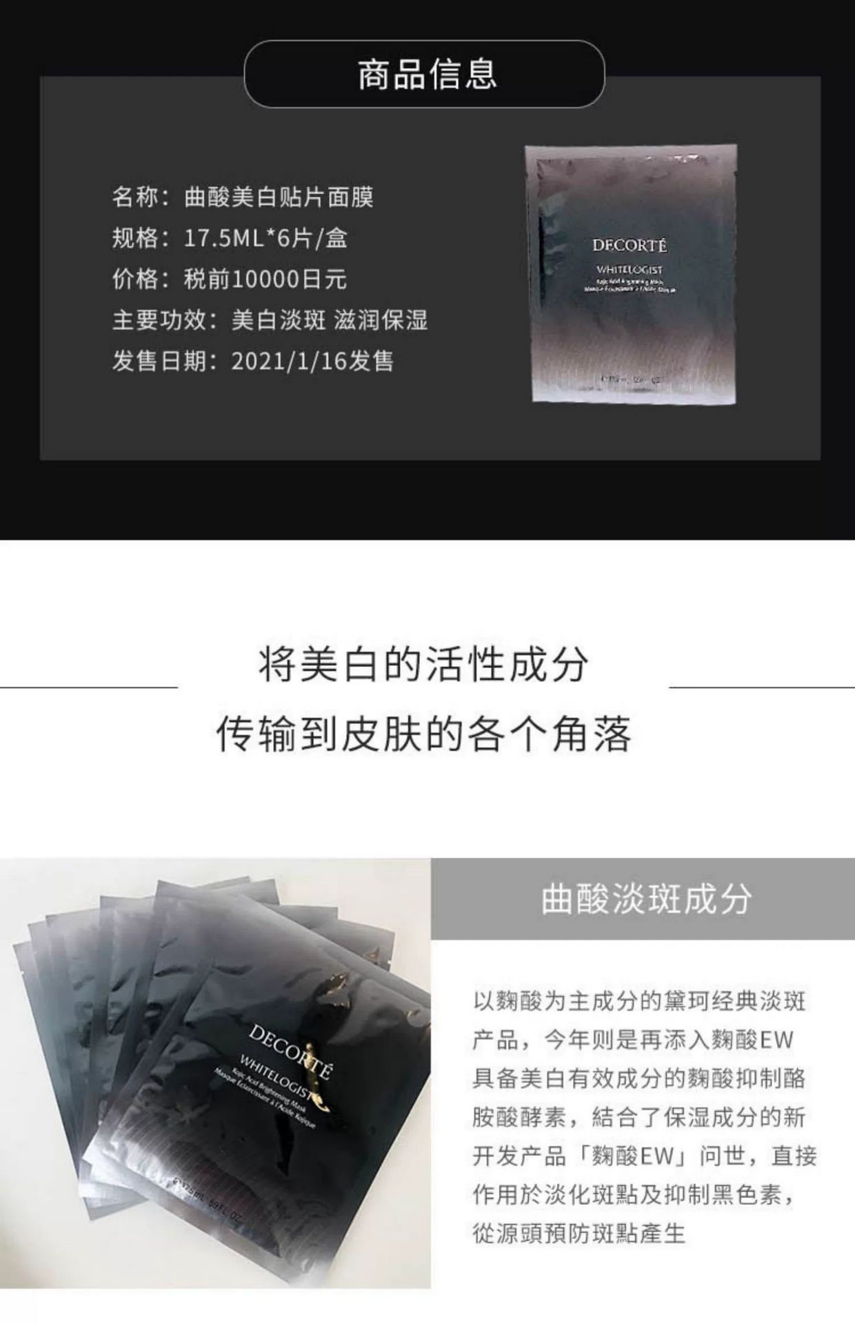 DECORTE WHITELOGIST Mask 6pcs 1 phần
