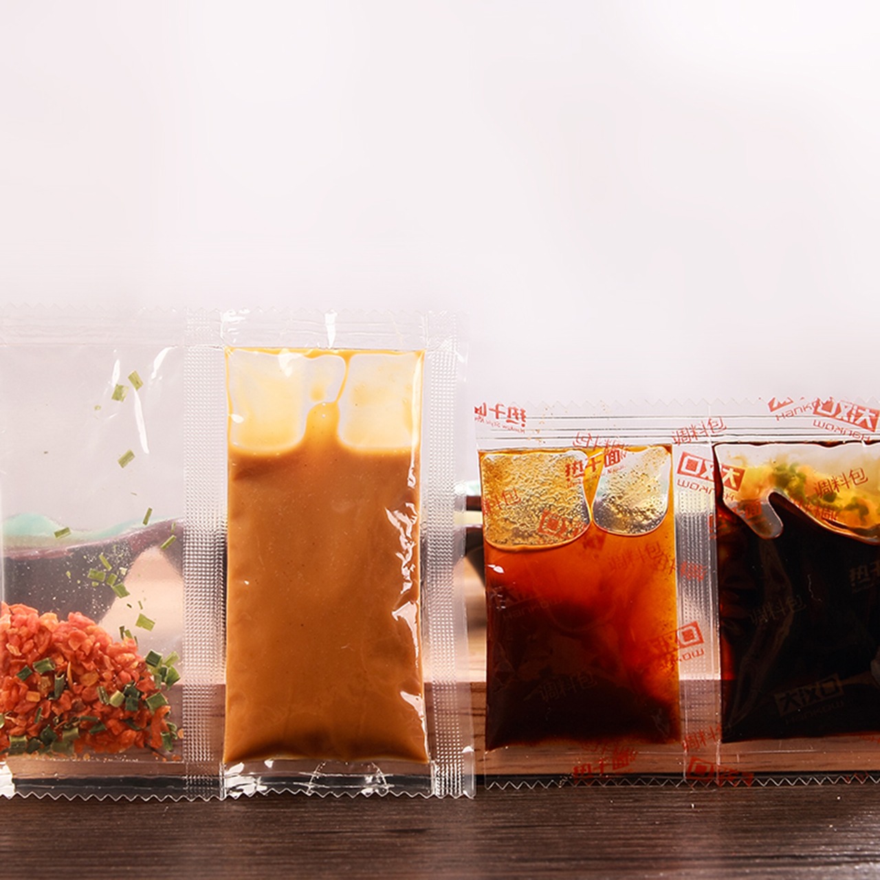酱油包:酱油、生活饮用水、食用盐、食品添加剂、食用酒精、果葡糖浆