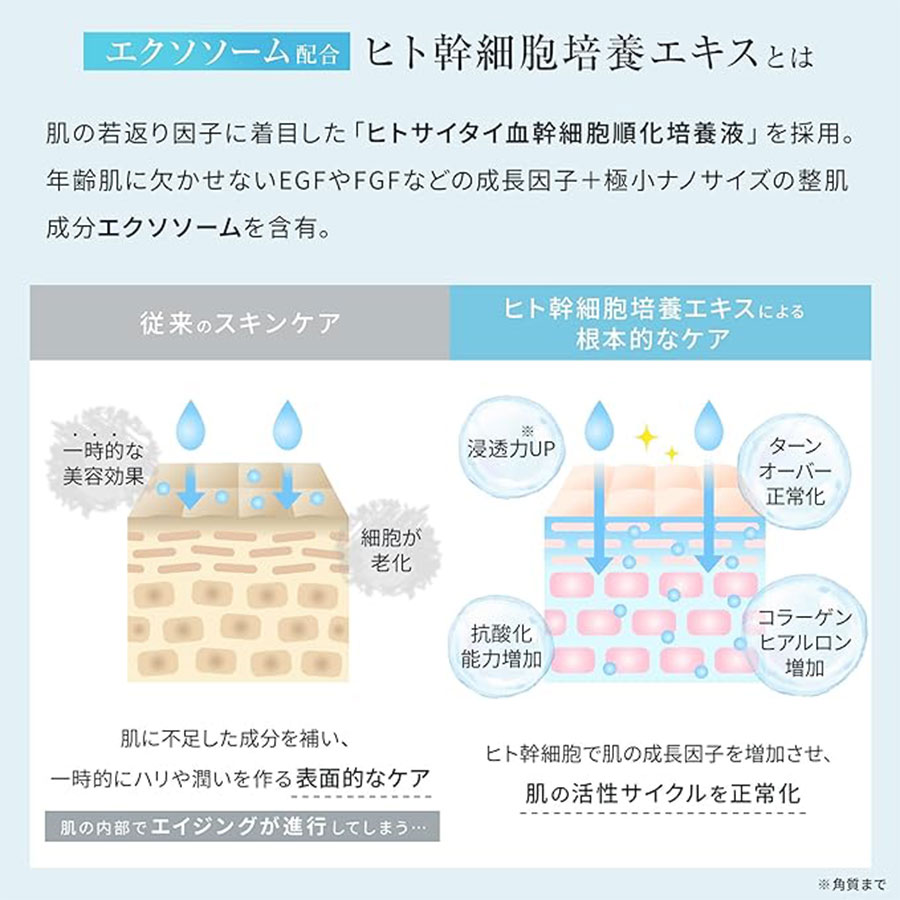 The supernatant secreted during human stem cell cultivation is rich in beneficial components for beautiful skin. To combat aging, the impurities are removed from this supernatant to obtain pure exosomes.