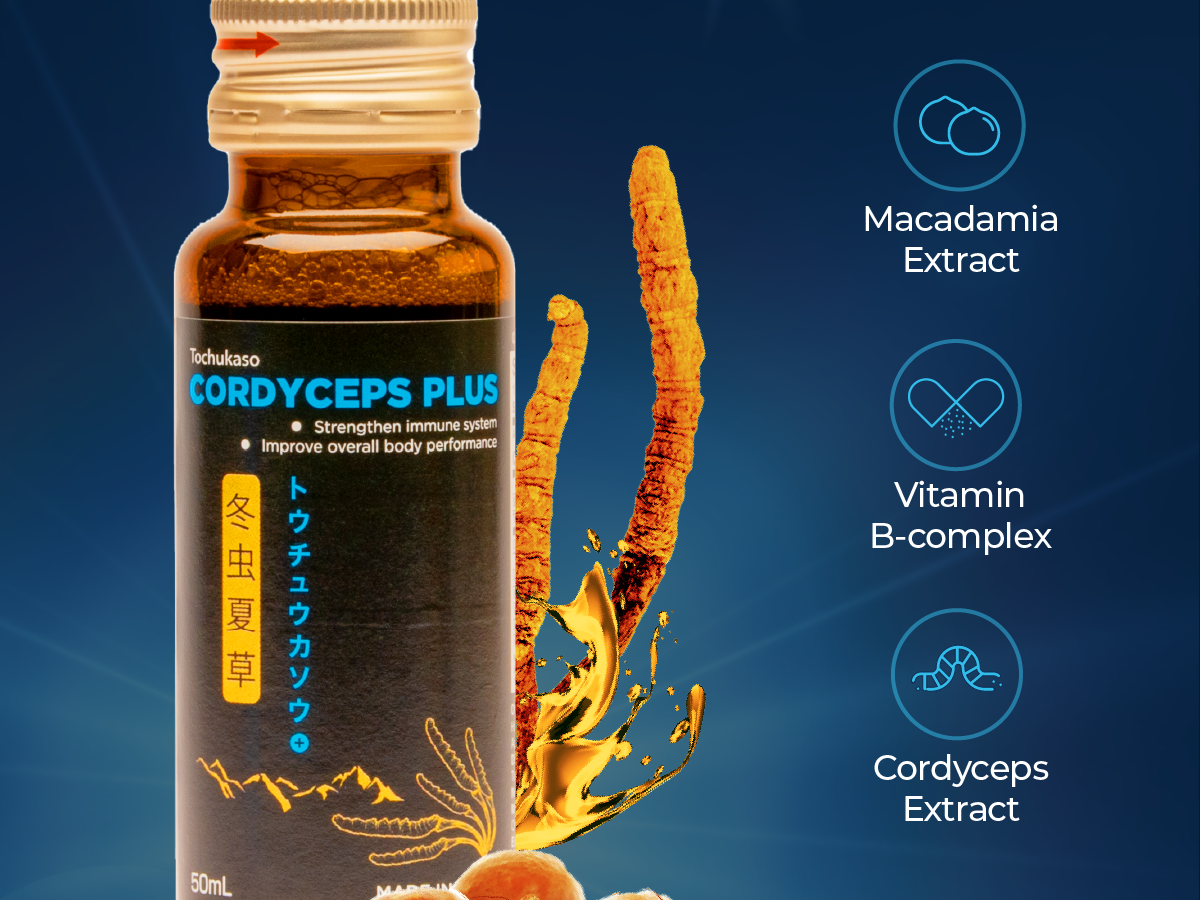 FINE JAPAN's Cordyceps Plus drink contains natural beneficial cordyceps extract. Our Cordyceps Plus with Macadamia is formulated with a high concentration of cordyceps extract and macadamia extract. The product is a great choice for those leading busy, stressful lives.