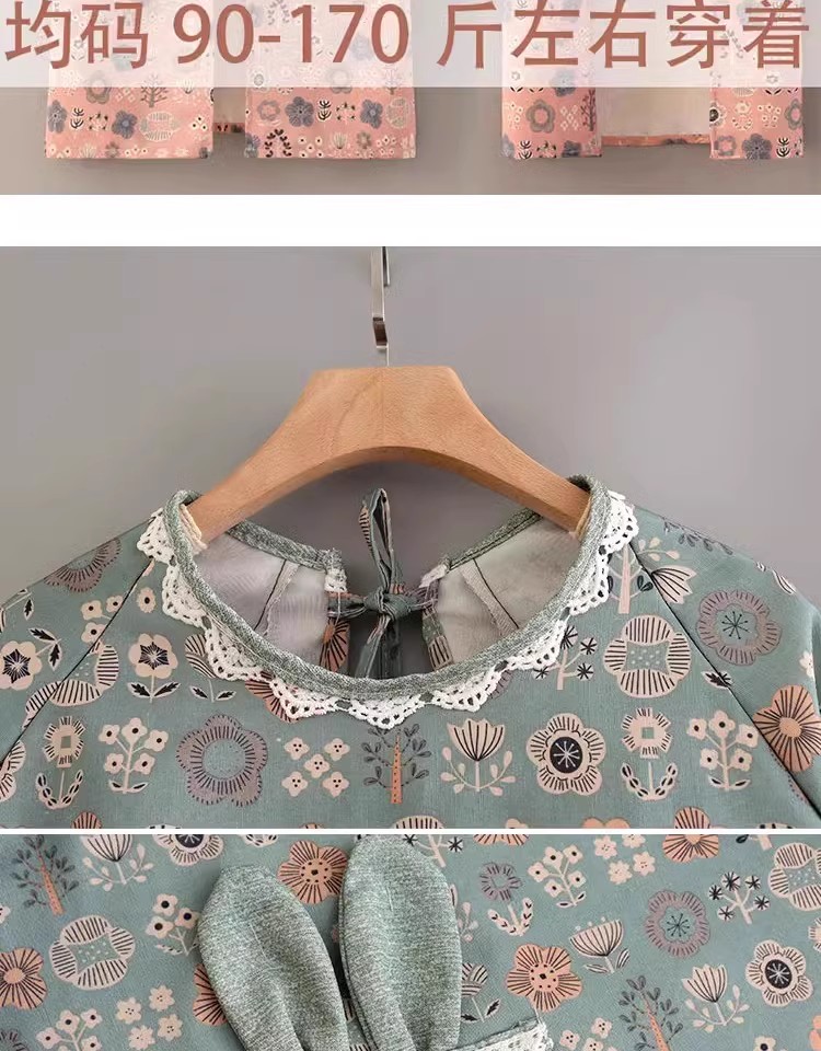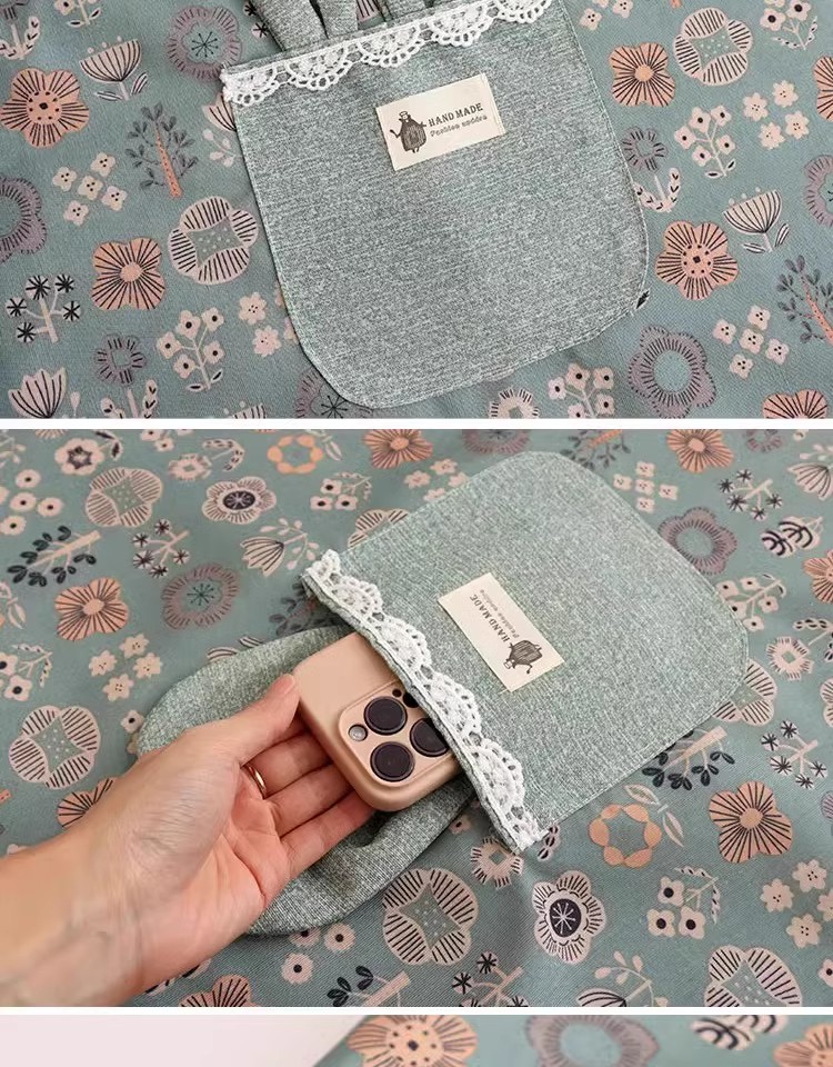 时尚帆布围裙背带帆布印花兔耳朵豆绿 1 份