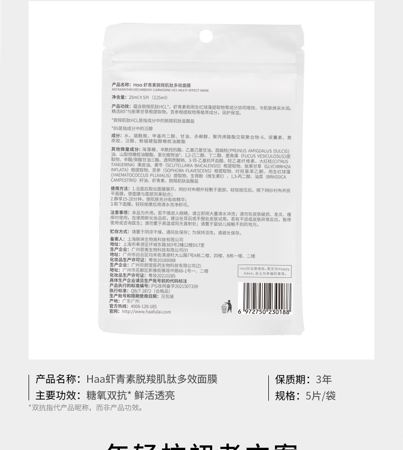 Haa虾青素双抗精华面膜5片装 1 份