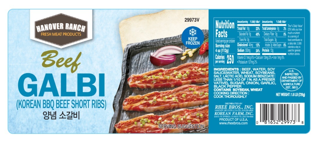 Hanover Ranch 양념 엘에이갈비 냉동 1.6 파운드