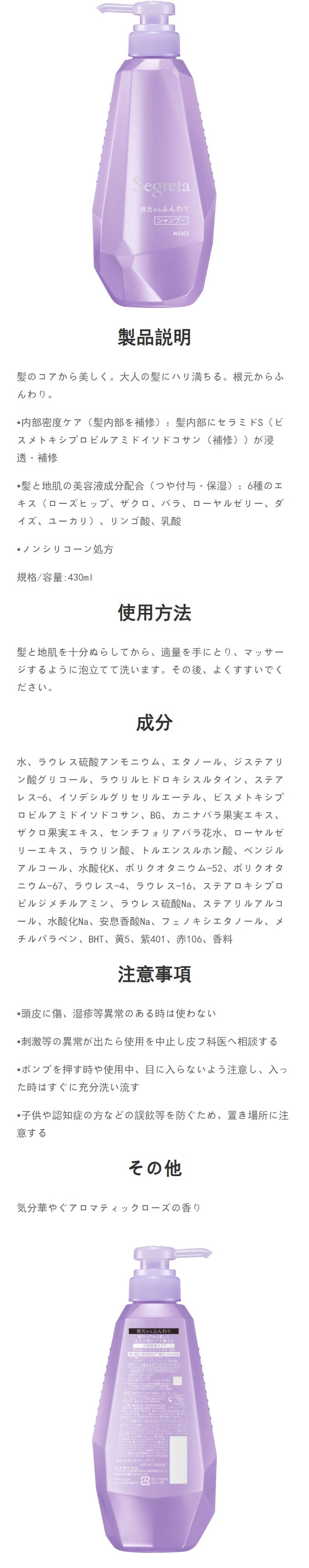 花王 セグレタ シャンプー 根元からふんわり 430m 430 ml(ミリリットル)