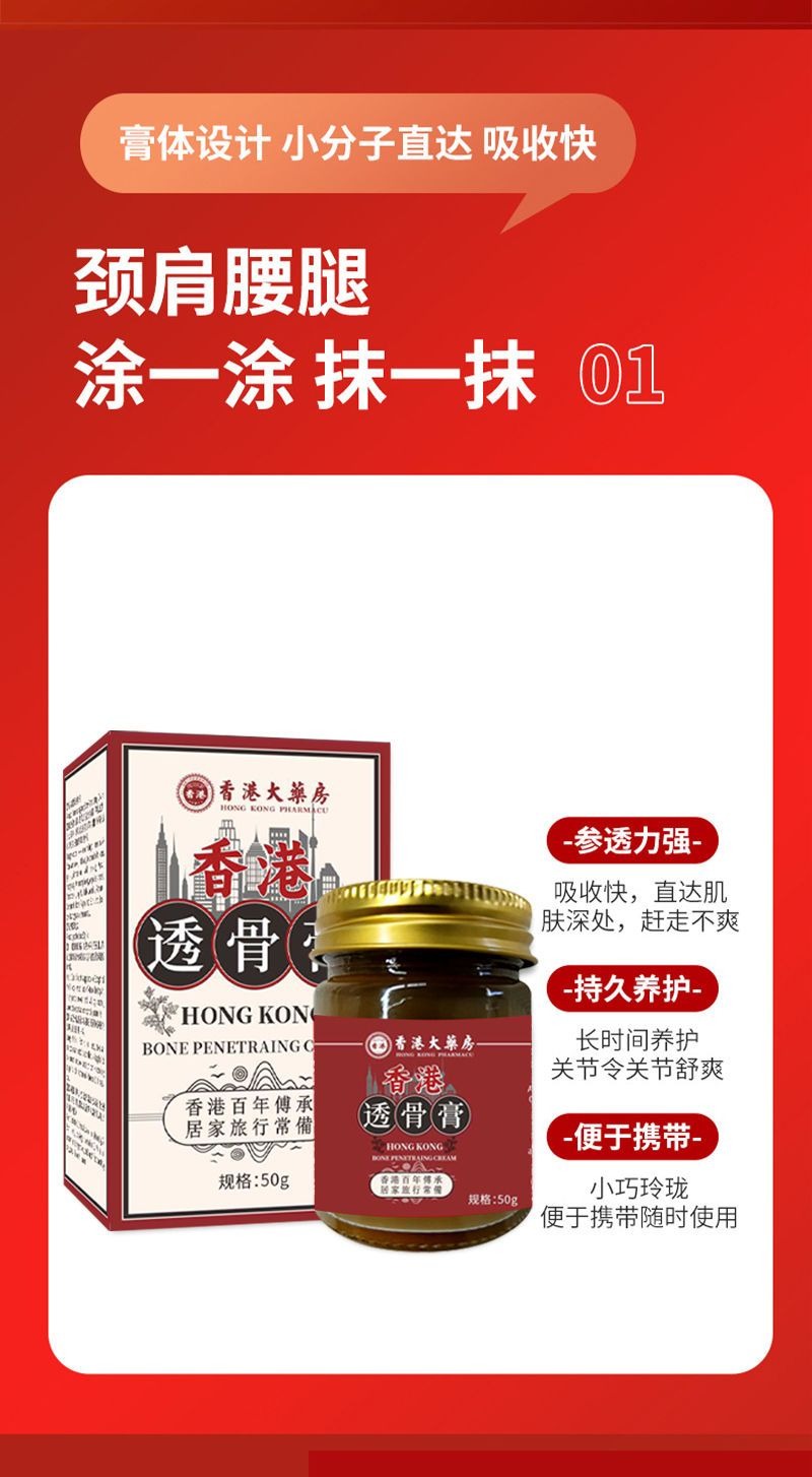 【香港大藥房】正宗港貨透骨膏好原料腰椎肩周脖子手腕腳腕都能用 50 克