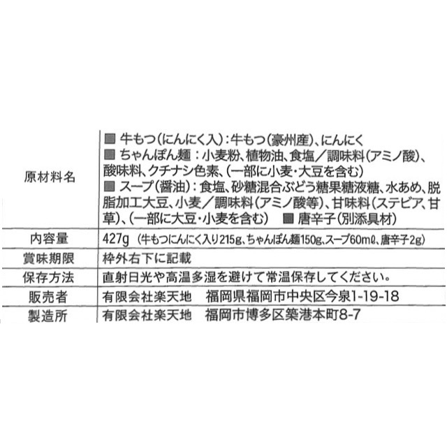 元祖もつ鍋楽天地【常温】お土産もつ鍋セット2人前