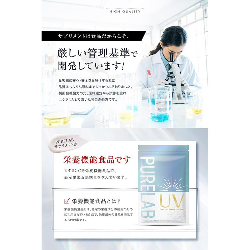 PURELAB 飲む太陽対策 インナーケア サプリメント (製薬会社との共同開発) 国内GMP認定工場製造 (栄養機能食品ビタミンC) 60 個