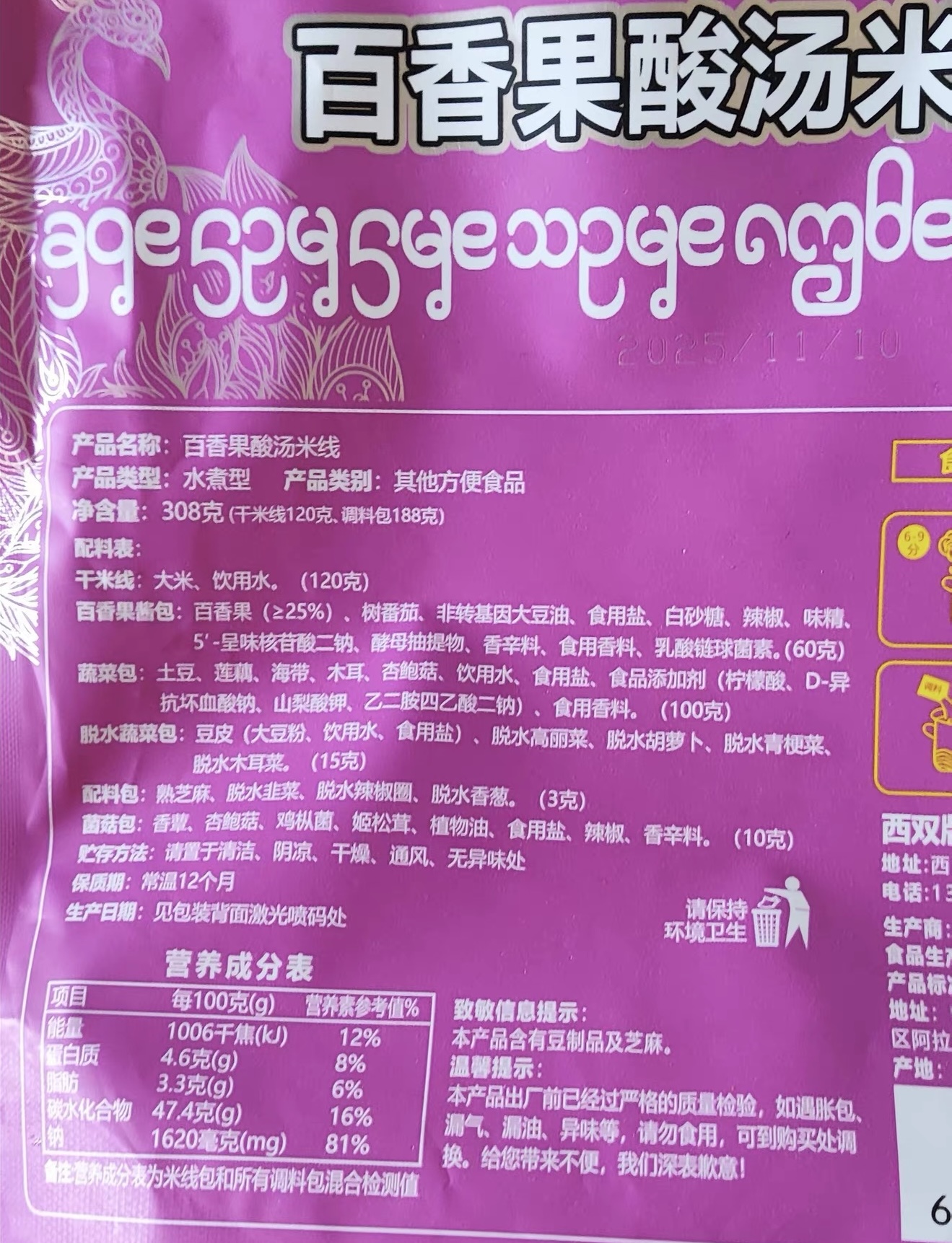• Net Weight: 308g (Dried Rice Noodles 120g + Seasoning Packets 188g)