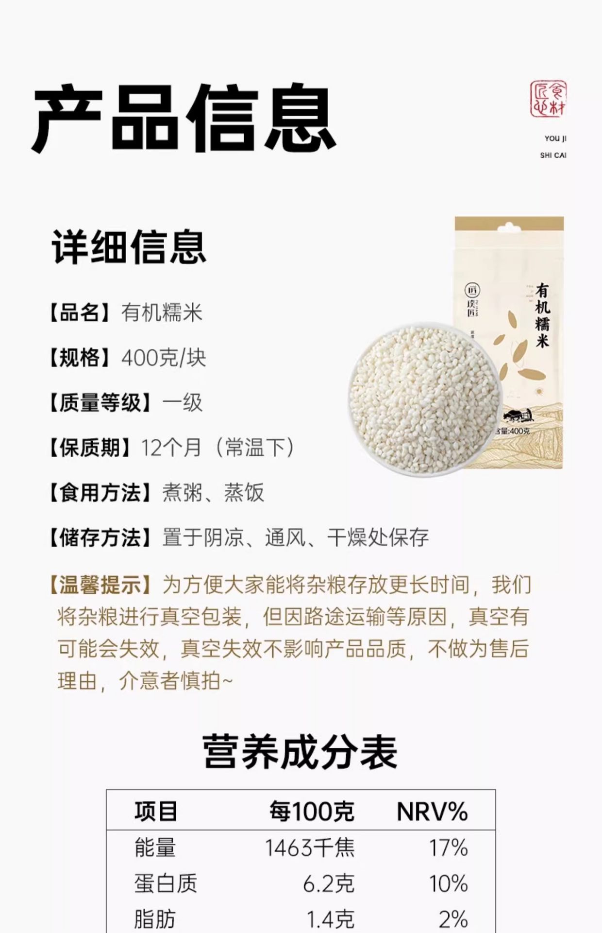 Pujiang Organic Glutinous Rice 400 g
