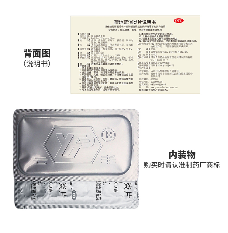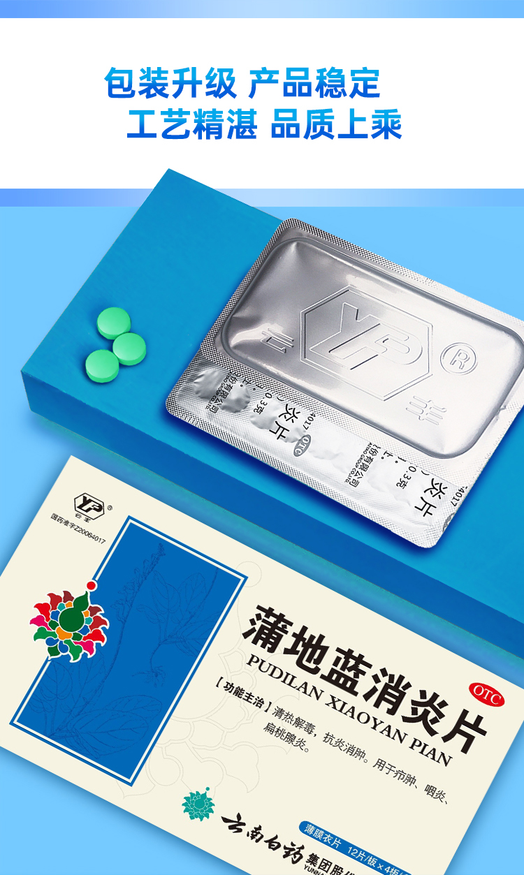 云南白药 蒲地蓝消炎片 0.3g*48片板清热/盒 14.4 克