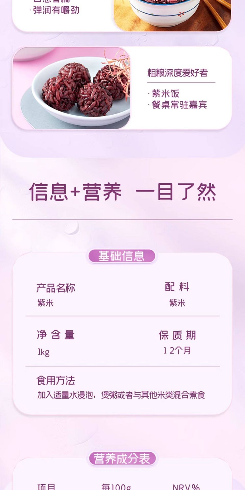Purple Rice, Low-Fat Whole Grain Glutinous Rice, V 1000 g