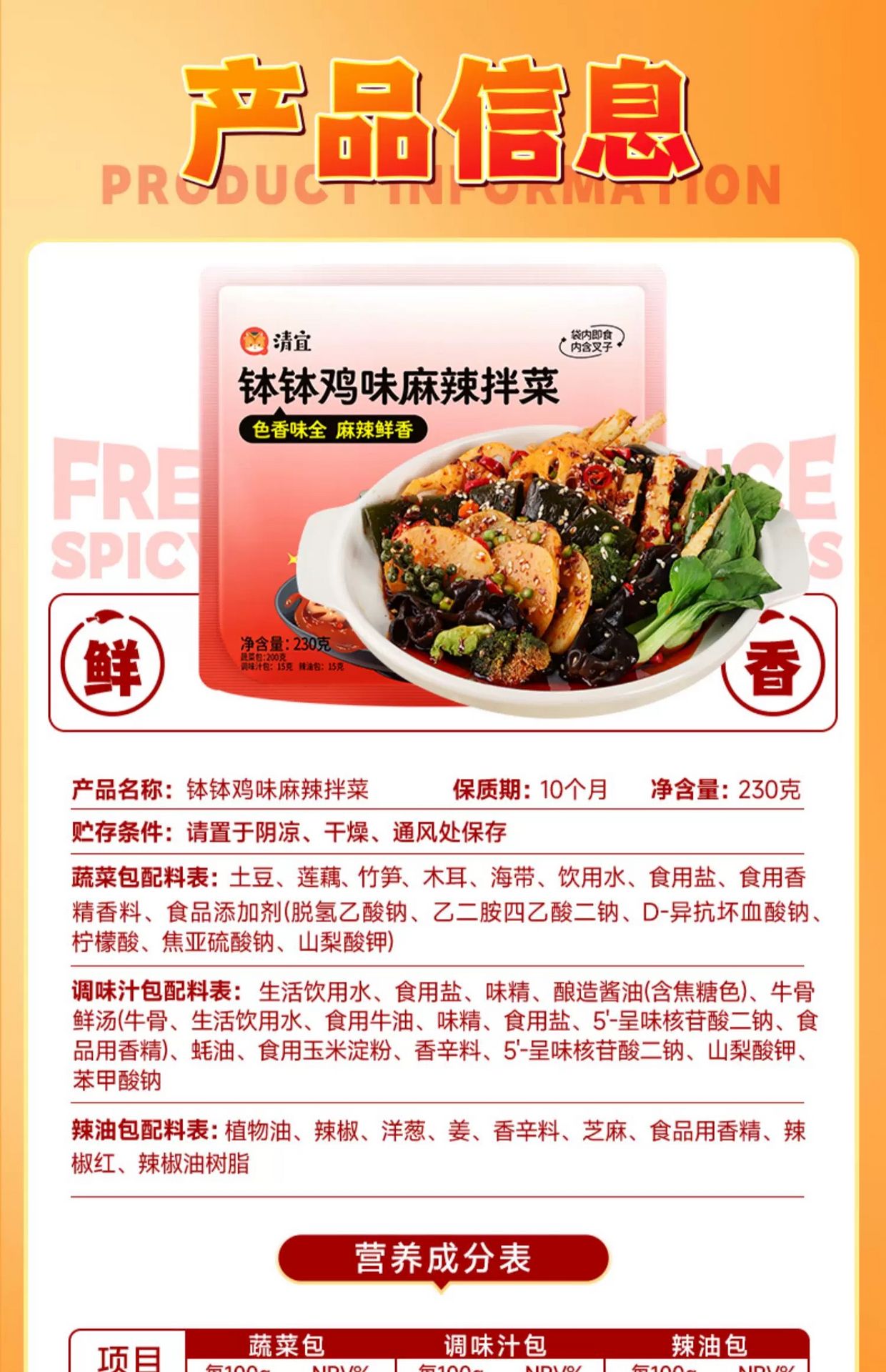 清宜麻辣拌菜 鉢鉢雞味免煮即食230g*2 460 克