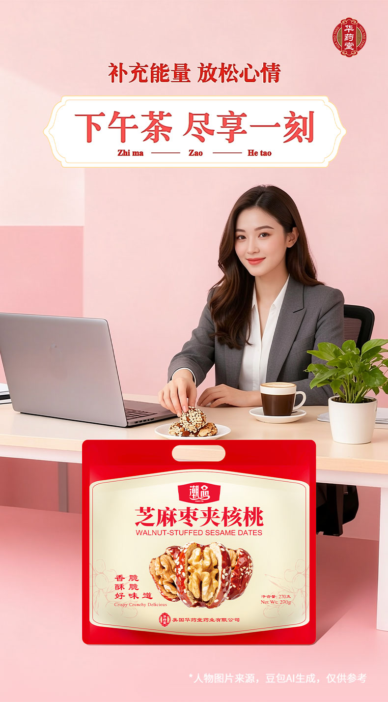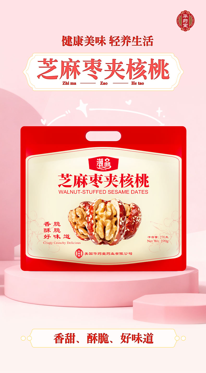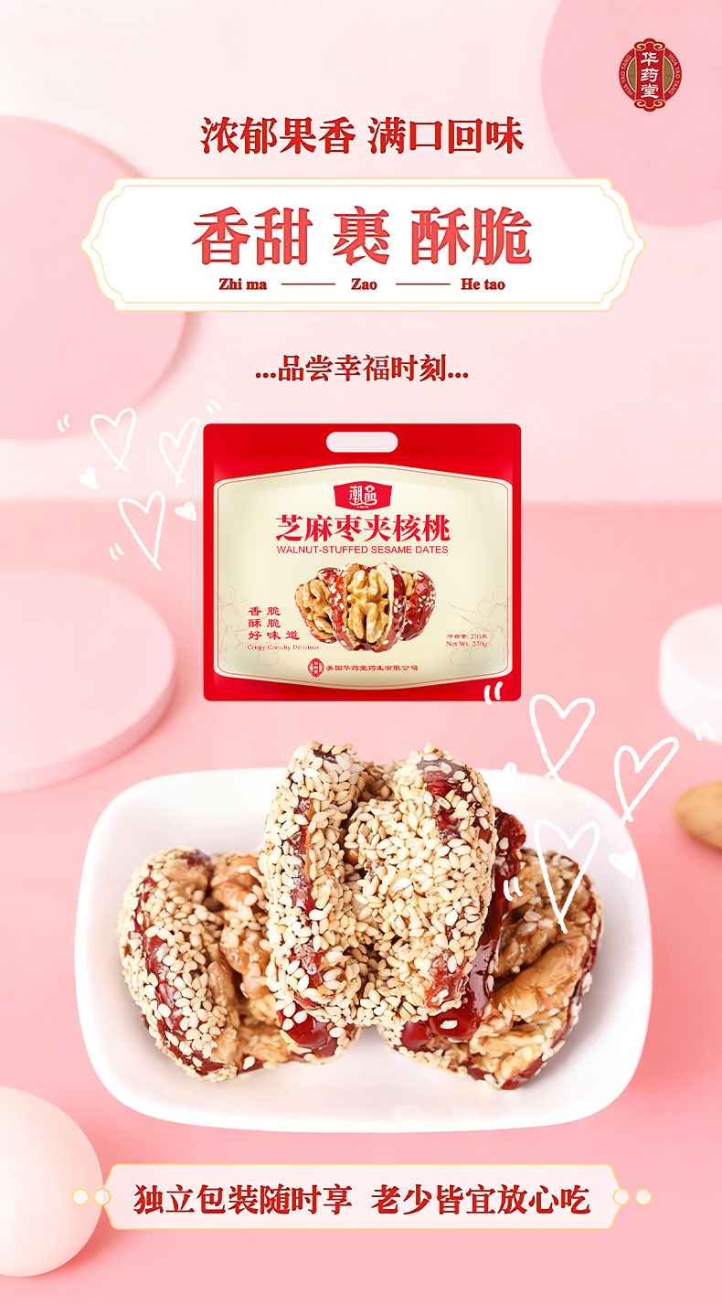 华药堂 芝麻枣夹核桃 270g 0添加 解馋小零食 1 包
