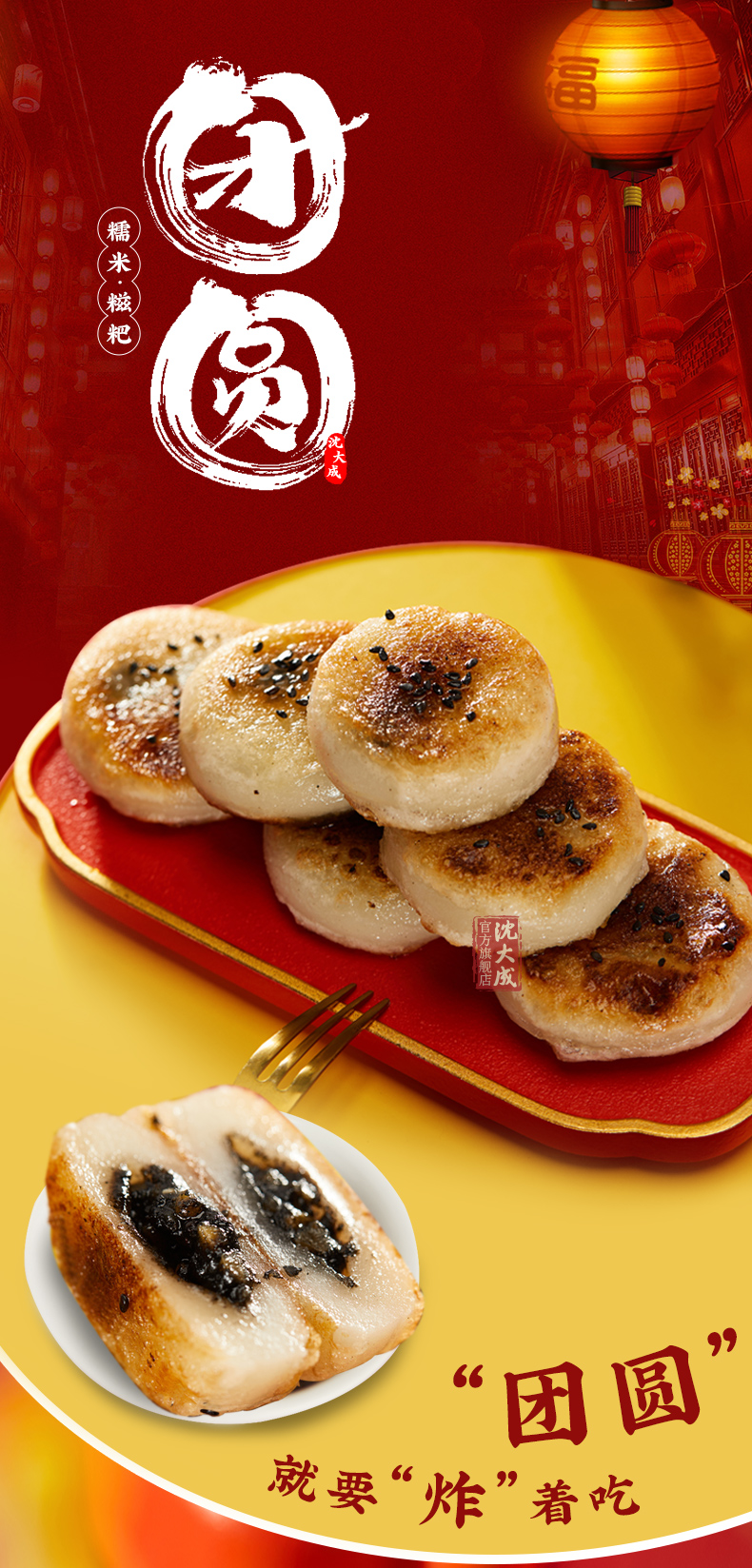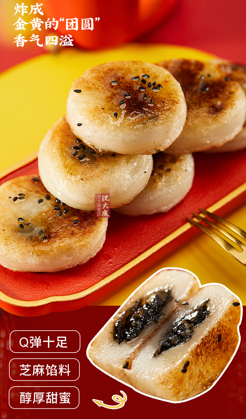 沈大成 上海团圆 糯米 糍粑 油炸 黑芝麻 中华老字号 油炸汤圆 麻糍 上海特产