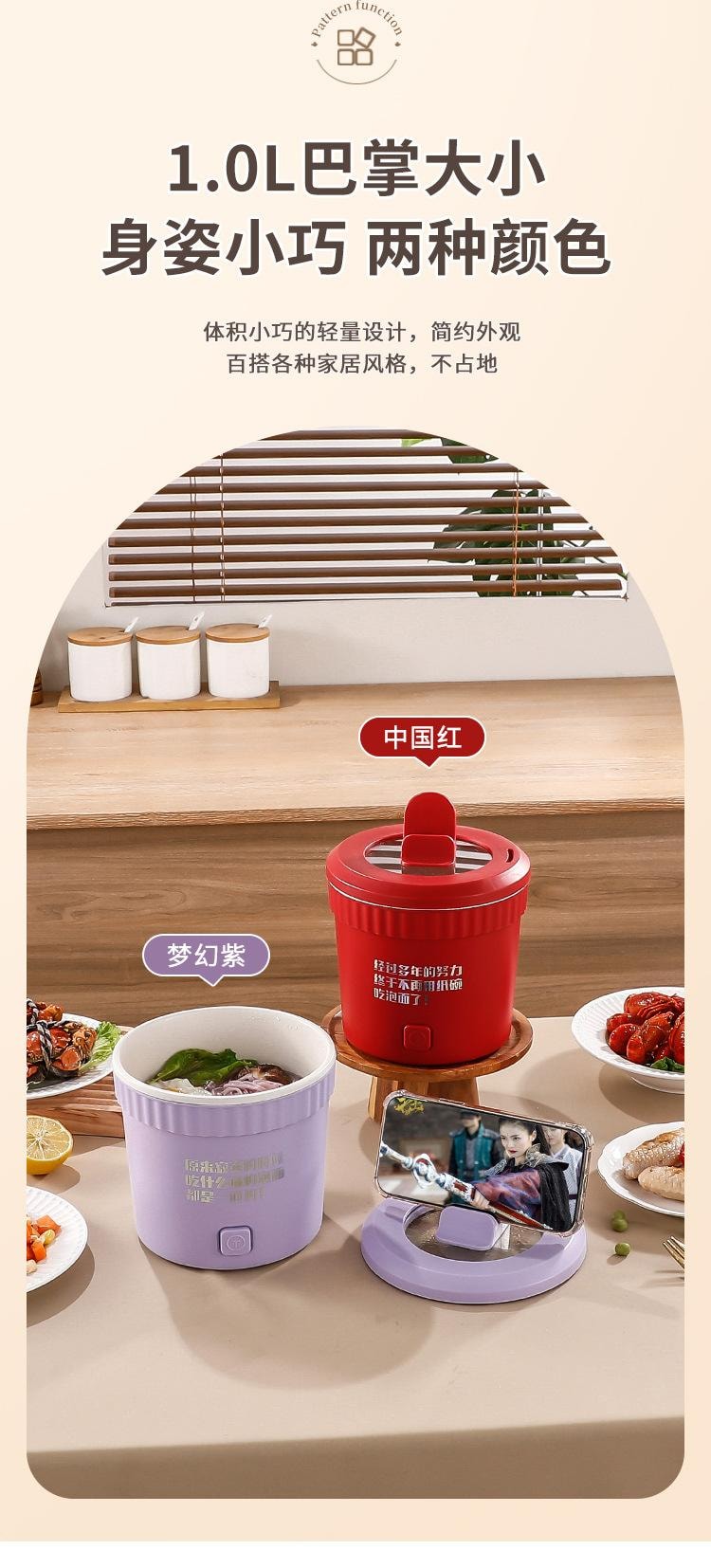 泡麪小型電鍋電煮鍋 多功能 一體-紅色 1 个